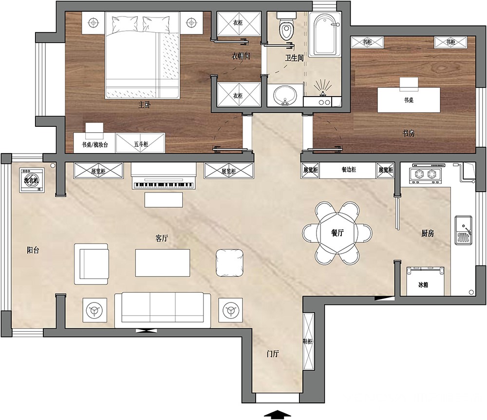 小区:格调松间 面积:115㎡ 户型:二居 风格:美式风格