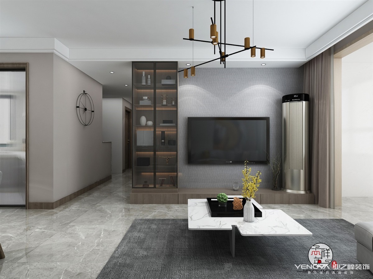 本案例是一套现代简约设计,我们从色彩、材质的角度出发,保持原有空间结构及硬装造型并未做大改动,只对墙面材质和灯光布局进行调整,并为每个房间设计功能强大的储物收纳柜,选择合适的家具软装装扮空间,基础色调为灰色,加入木褐色拉开空间层次感和质感,进行几何形状的色块分割组合,用色彩来引导空间的软性分区和视觉重点,同时用白色提亮空间,保障空间的视觉亮度,形成色彩对比,丰富空间层次。
