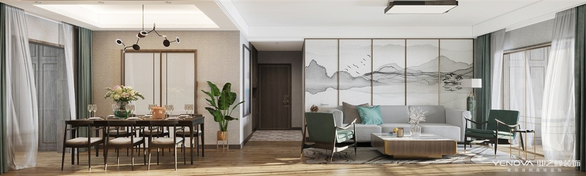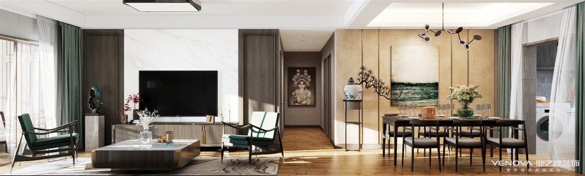 现代中式,把空间做到恰到好处的精致,格局上更讲究人性化与思维化,呈现出一种规则美。在简约中隐匿中式;流转处乍现优雅。不管是空间节奏的精致处理上,还是装饰细节的混搭手法上,都犹如一曲婉转的旋律,在空间中缓缓流淌。当轻奢的细致入微与现代的自在情调相遇,贵族格调邂逅简约爽朗,又是另一种迷人的风情而且功能空间相互渗透