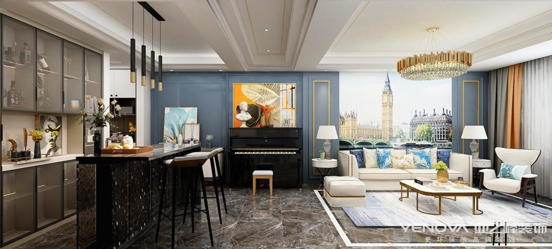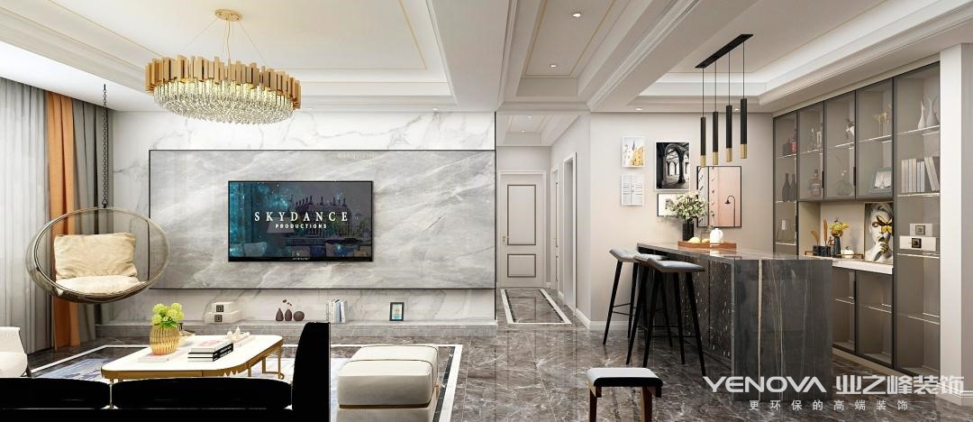 现代轻奢,在简约中隐匿轻奢;流转处乍现优雅。当轻奢的细致入微与现代的自在情调相遇,贵族格调邂逅简约爽朗,又是另一种迷人的风情而且功能空间相互渗透。本户型业主不喜欢常规餐桌的摆放,设计师利用空间布局设置吧台。在不规则的室内空间可充分利用边角空间,不但增加了实用面积,而且还使整个室内空间都显得整齐。