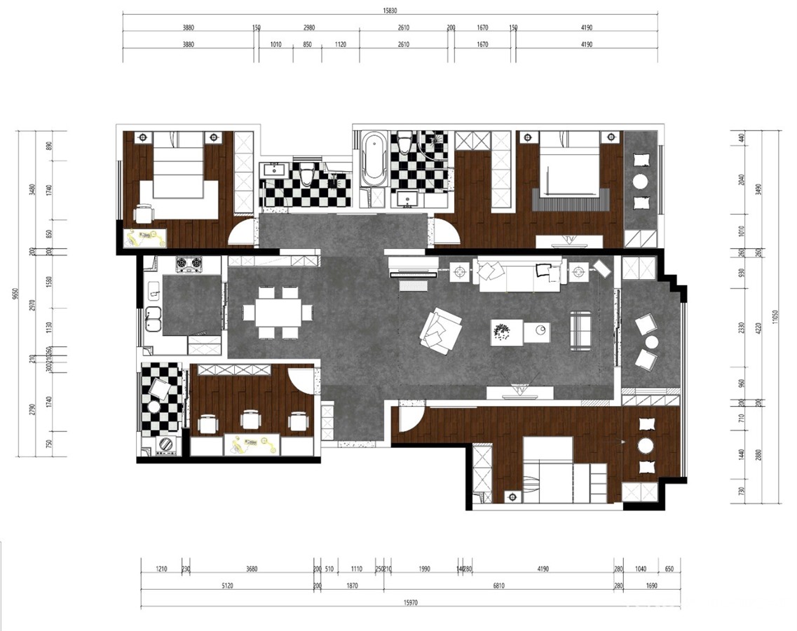 210㎡四居新中式风格华著中城