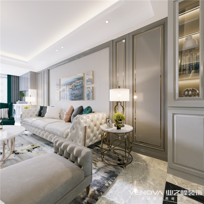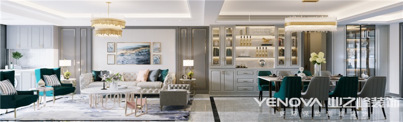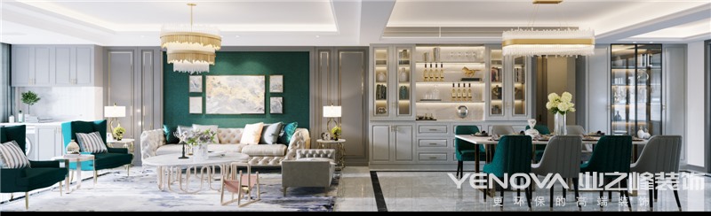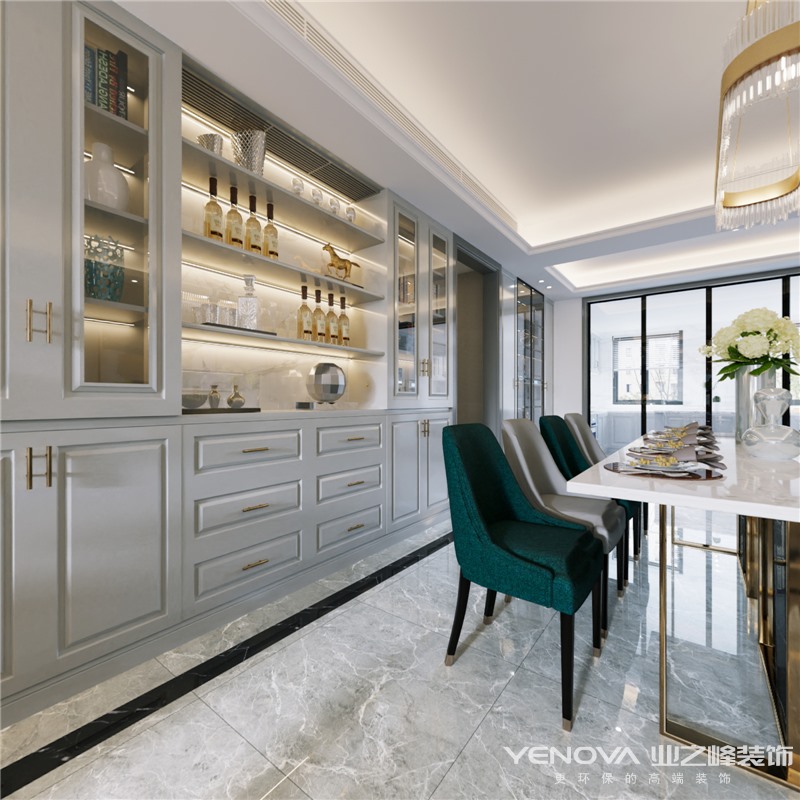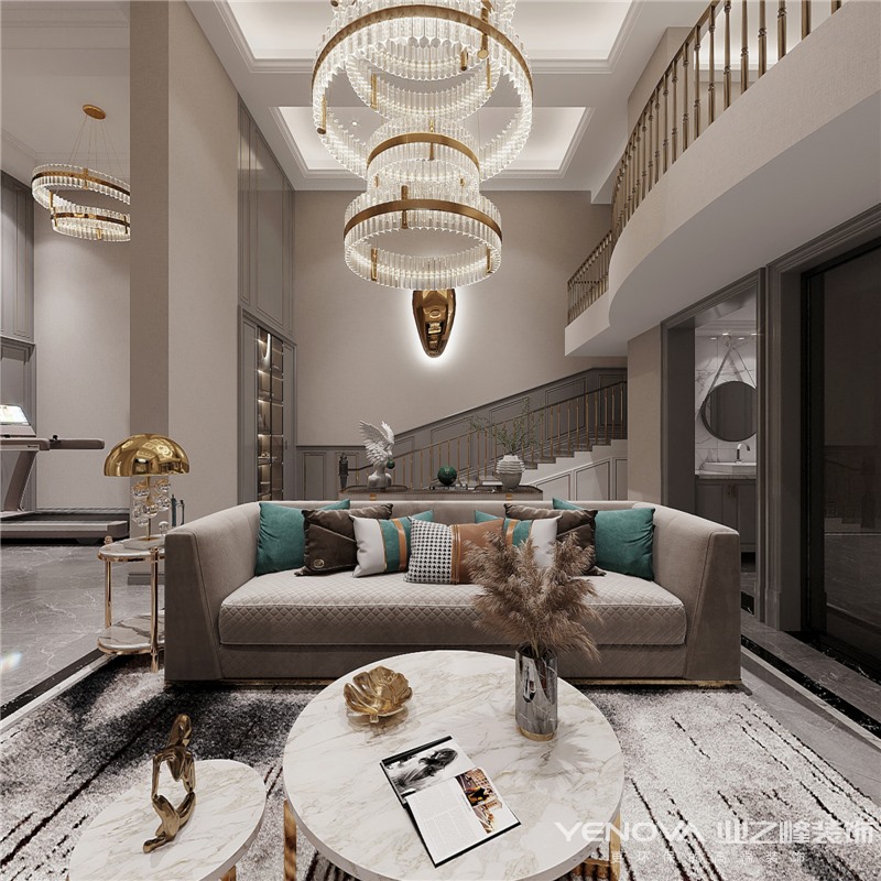 本案列中,设计师在充分了解业主的生活及审美诉求后,对整个空间进行梳理并定位为美式轻奢。在户型上,厨房面积不大,采光也不是很充足,地下室采光很好,层高有四米四,所以,借用了层高高的优点,做了夹层设计。地下室做了影音室,全屋智能,业主闲暇时间,只需轻轻一按,窗帘自动关闭,音响电视自动打开,开始享受影院般的体验。在软装设计上用高品质感的家私、搭配一些精致的软饰和小摆件、用跳色的手法来点缀空间,在低调雅致的氛围里来提升整个空间的时尚气质!