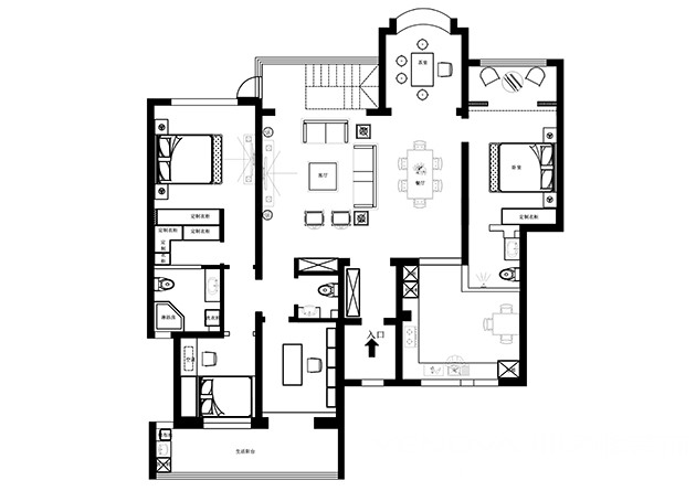 小区:国宾一号 面积:210㎡ 户型:四居 风格:新中式风格