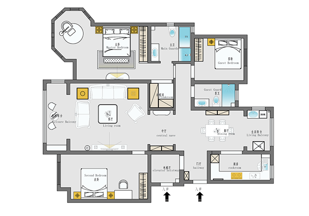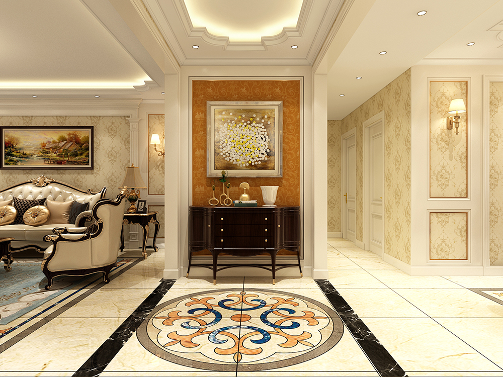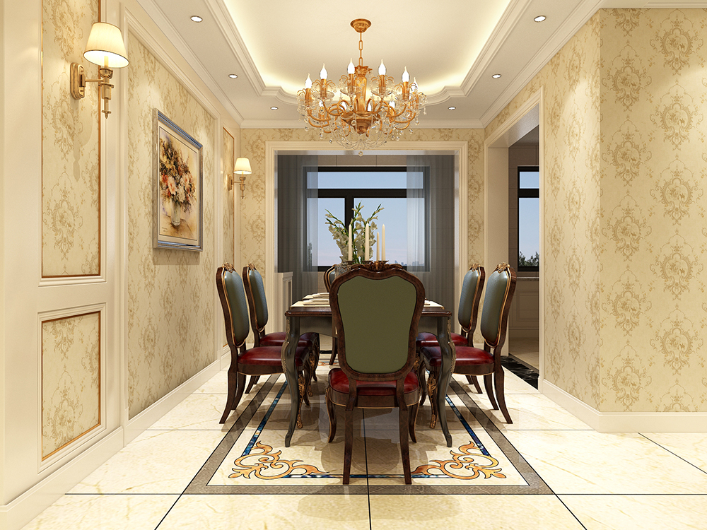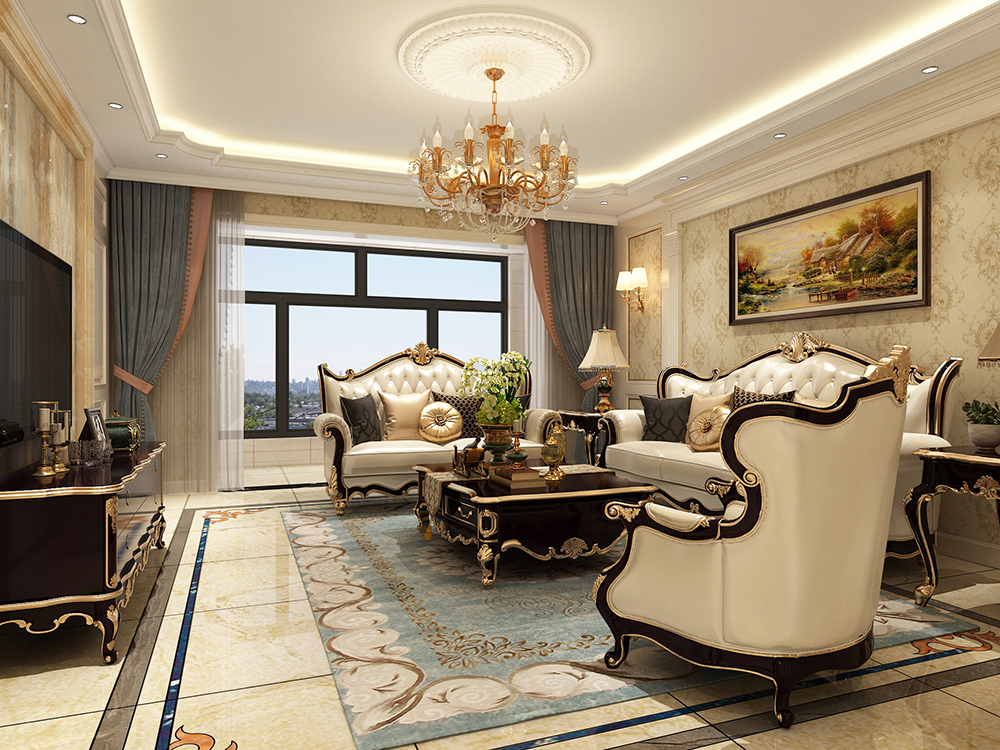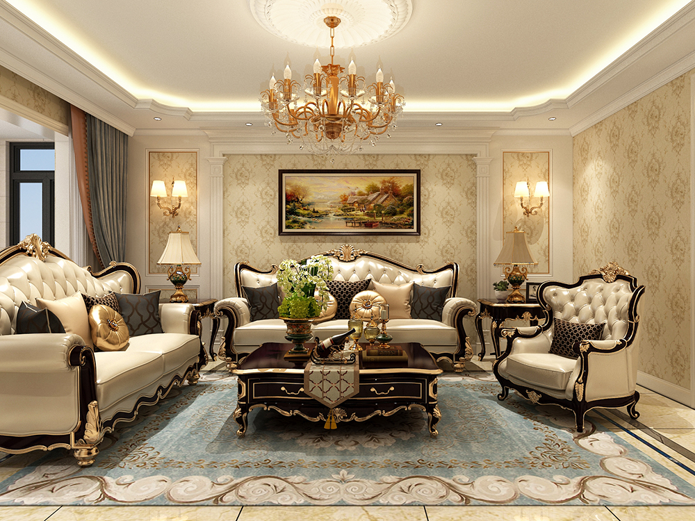 方案为三室两厅的户型,风格定向为法式风格。经典轴线、对称布局。装修和家具都采用对称的造型设计,整体造型庄重大气,具有恢宏的气势,整体布局讲究和谐与统一,讲究流动性、刚硬与柔美的结合,充分利用建筑空间。在经典法式风格中,三段式的明快、精准、清透布局打造出内在与外在空间的完美统一。