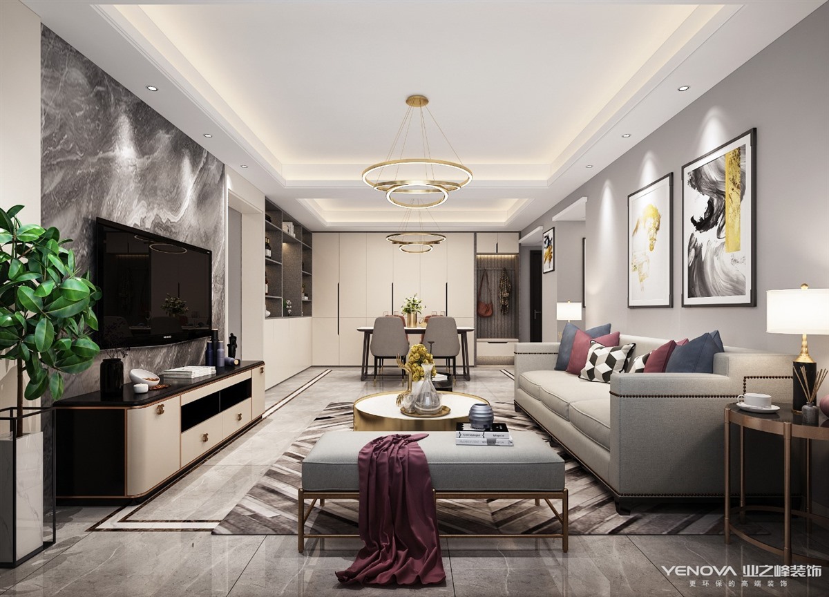 小区:绿地中央广场 面积:128㎡ 户型:三居 风格:现代简约风格