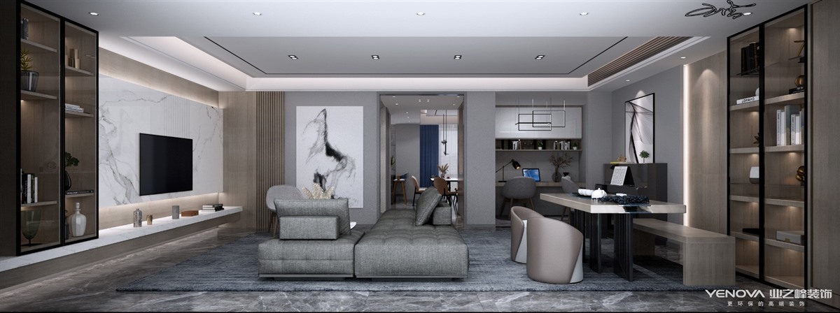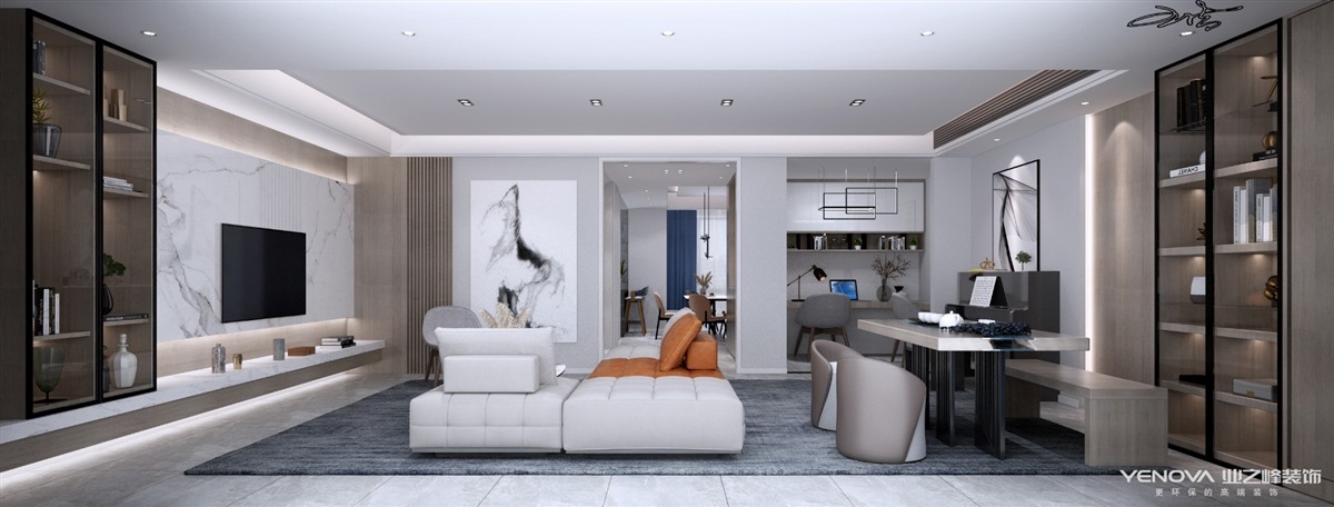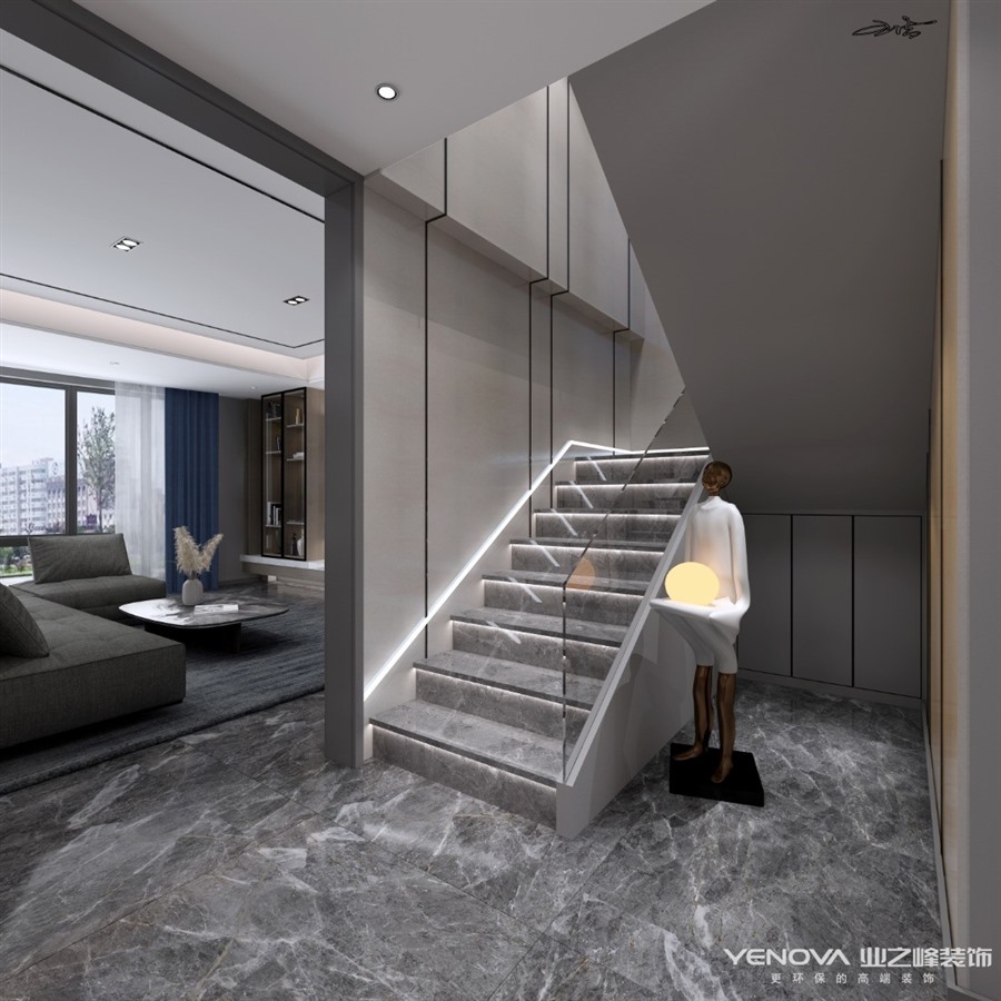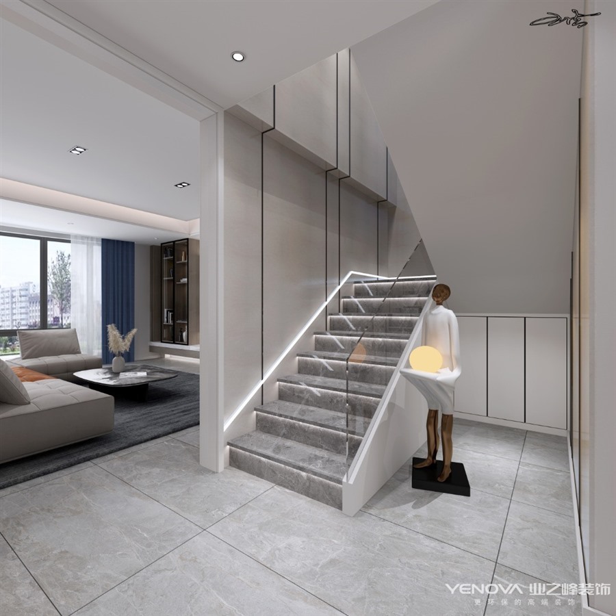 居住人口为三代同堂共六口人,喜欢现代简约风格,对生活品质要求较高。根据客户的需求及房屋的特点 在一楼没有刻意的安排住房,将整个一楼作为公共区域每个区域的空间构成都是采用开放式的形式 让整个家庭的人在公共区域停留更多的时间 家人之间的交流相处时间是本案例想要通过设计为其增彩的。