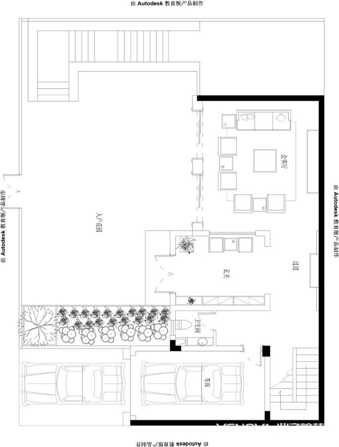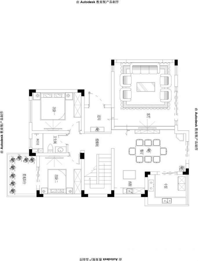 家具宽大、实用舒适。地面拼花与顶面吊顶装饰相呼应,同时采用墙布,
