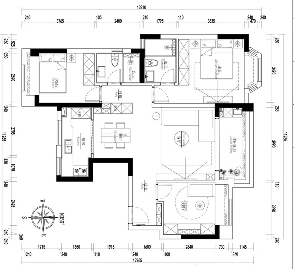 本案例为现代简约风的三室两厅,极简主义推崇形式简单,高度功能化与理性化的设计理念。其“精、简、巧、雅”的特点在120平的设计中发挥得淋漓尽致。客厅主要以简约大气的灰白色为主基调,透出冷静与质感,大大的画副以跳跃的蓝色给空间带来灵动,打造出一个舒适惬意的休闲区域。主卧大大的落地窗保证了采光,几何搭配的魅力尽在方圆之间,布艺的柔与金属的刚户型图