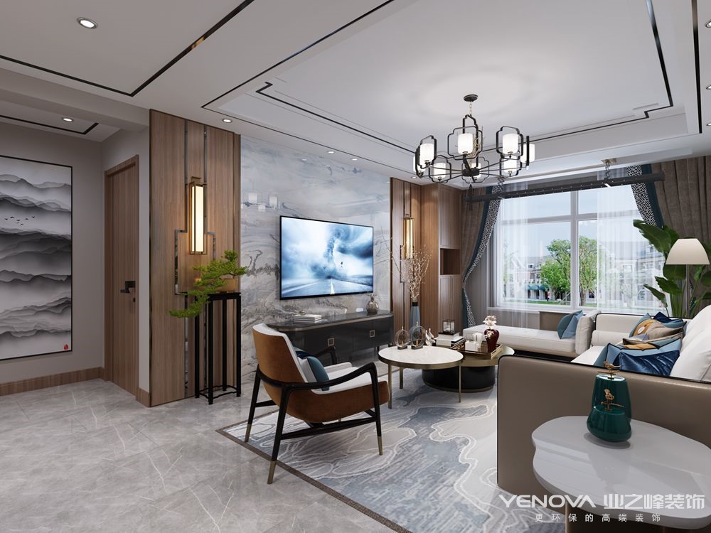 小区:三榆山水文园 面积:133㎡ 户型:三居 风格:新中式风格