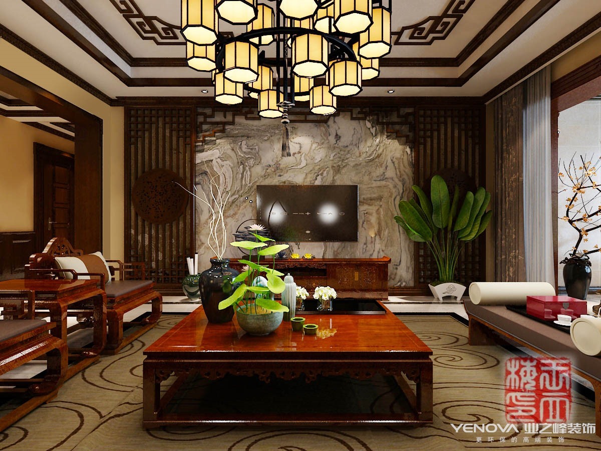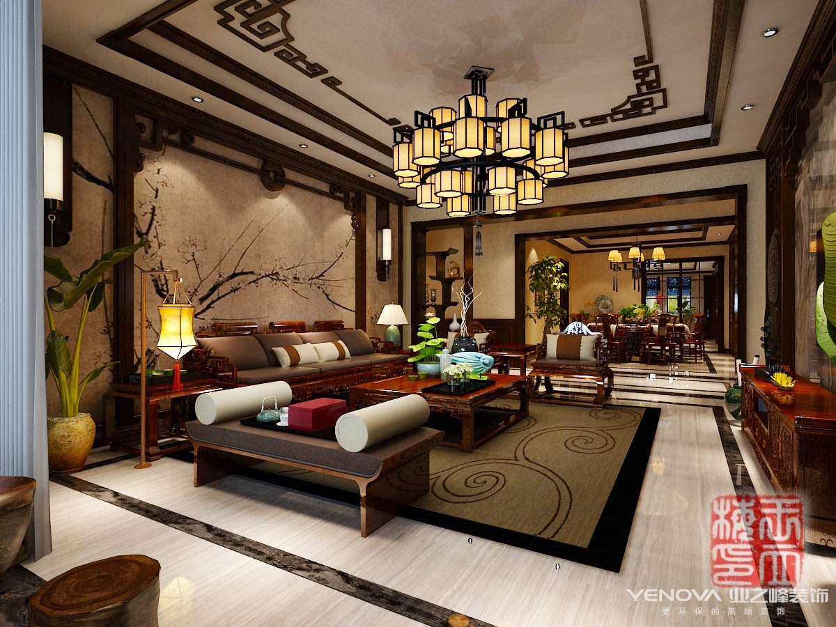 小区:锦河湾 面积:400㎡ 户型:平层 风格:新中式风格