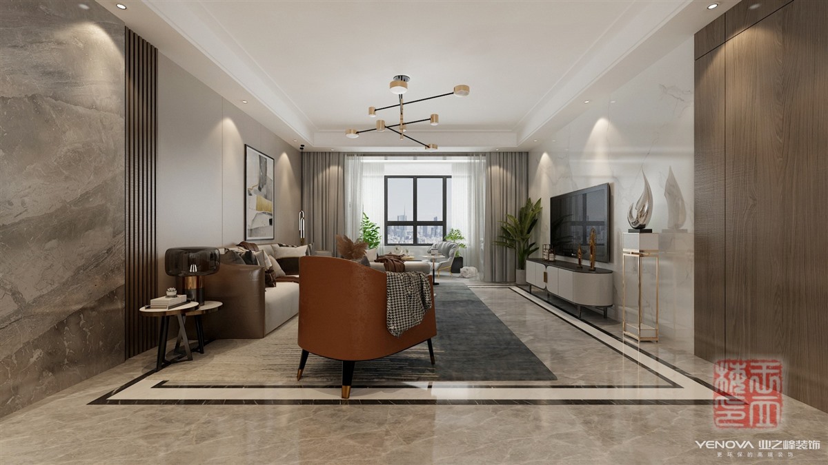 本方案所在楼层是二楼,采光相对来讲不是特别理想,在用色上采用温馨的大地色系,使空间有质感的同时又能弥补采光的不足。