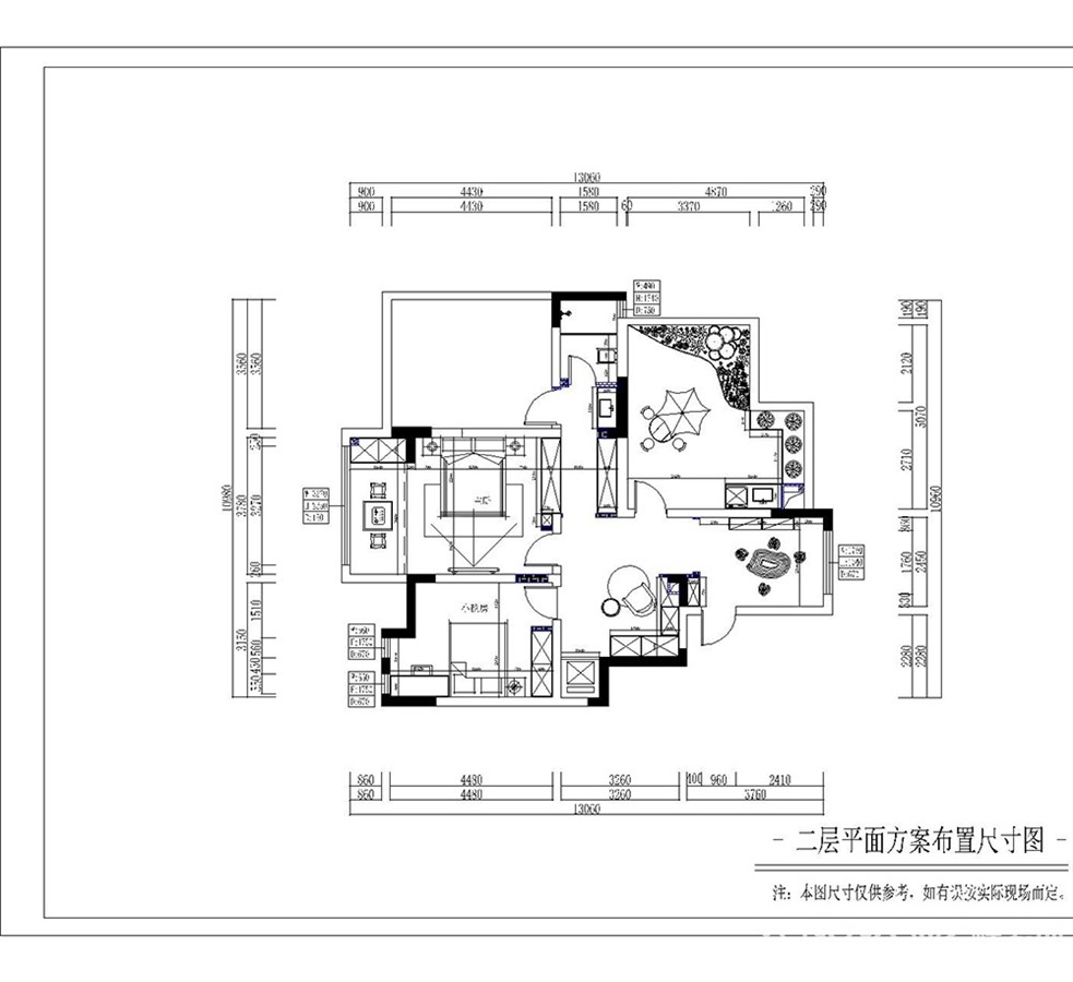 二楼整体空间划分不明确,过道位置空间面积过大,将入户口做成休闲区域,不仅解决空间浪费问题,还增加了休闲空间,起到画龙点睛的作用。