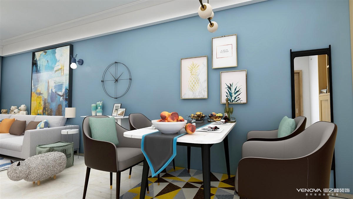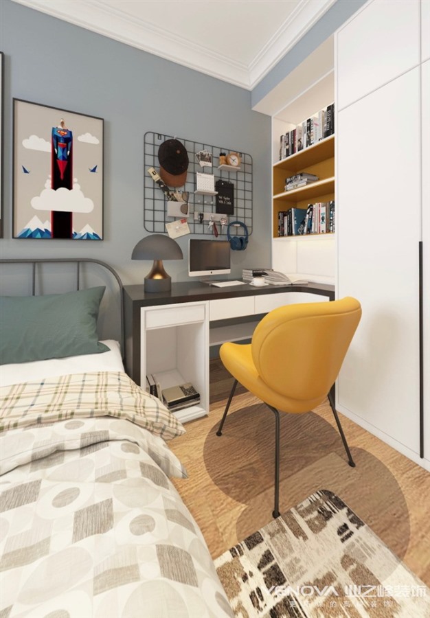 整体设计用材没有用太多的大理石和墙板等奢华元素,用进口地板与调色乳胶漆作为主要元素,简单明快,成本又低,环保无害。简约的家具不占太多空间,给宝宝留出充足的游乐地盘。