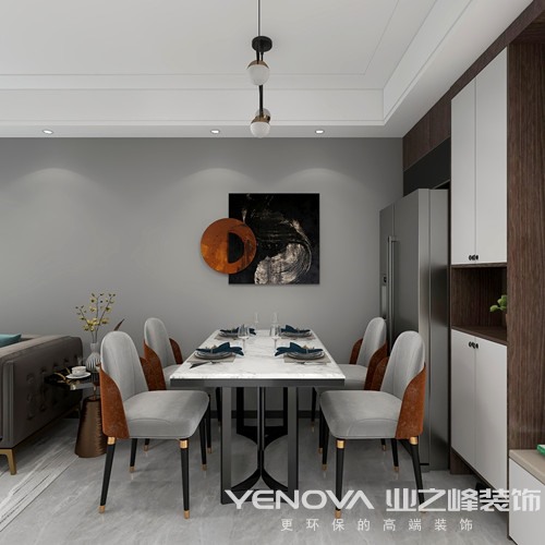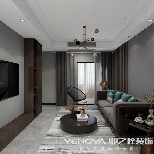 业主不喜欢太过繁杂的东西,一是便于打理,二是方便小孩日常活动不受影响。整体以灰色系和深胡桃木为主,橙色点缀,更显格调,全房墙面顶面没有使用复杂的线条,简洁大气。