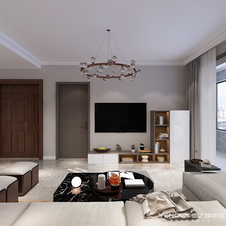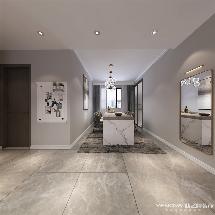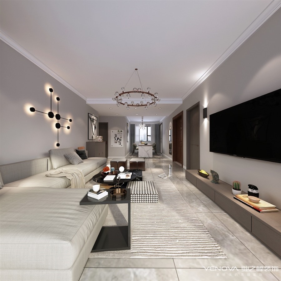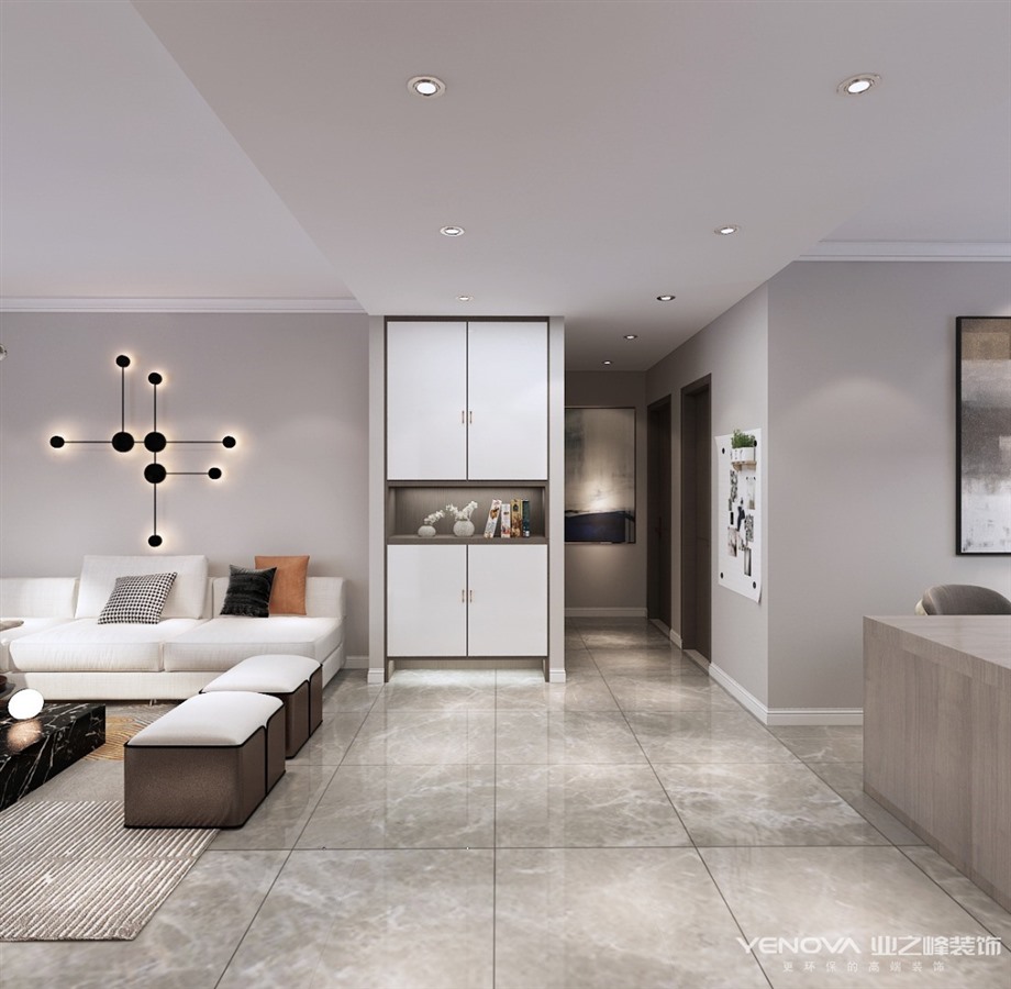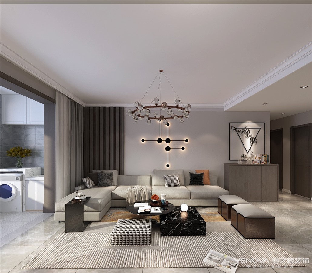本案位于中新国际城建筑面积135平米,设计风格定位现代简约,入户可以看到全屋没有什么复杂的雕琢装饰,简单干净,如出水芙蓉一般,展现着纯正质朴之美,更多装饰依靠软装搭配,利用高级灰深咖等色彩营造时尚氛围