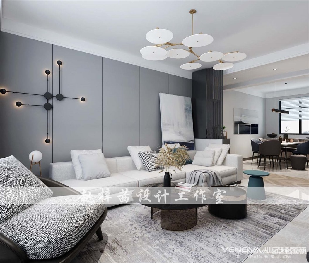 小区:御山首府 面积:127㎡ 户型:三居 风格:现代简约风格
