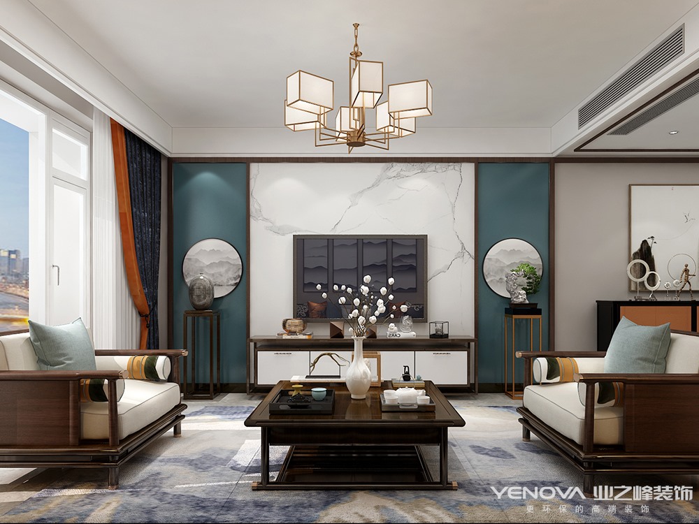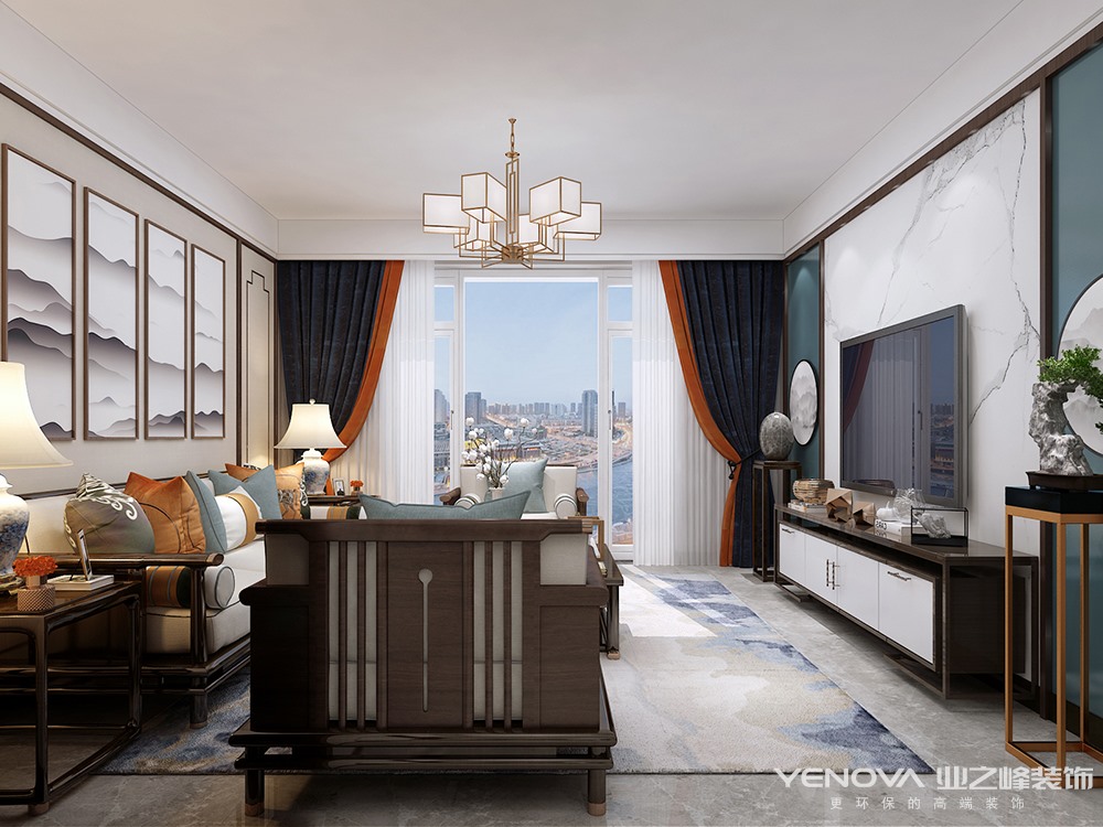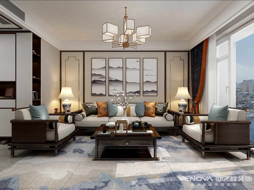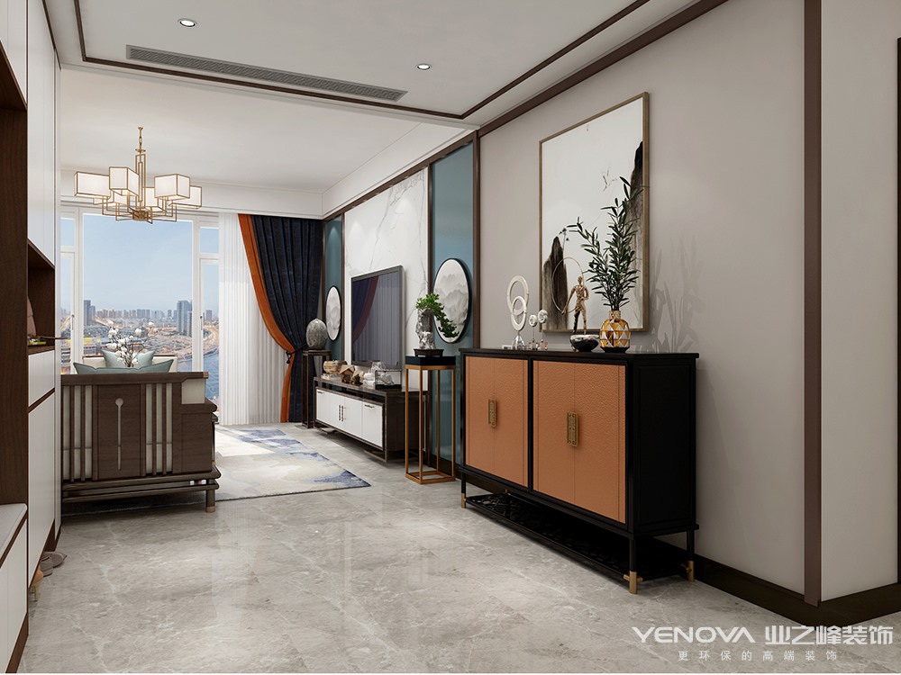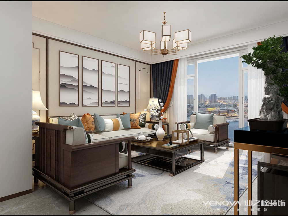 客厅是传统与现代居室风格的碰撞,设计师以现代的装饰手法和家具,结合古典中式的装饰元素,来呈现亦古亦今的空间氛围。