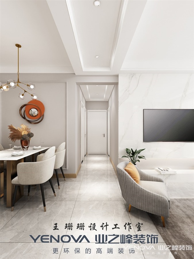 本案在主题风格方面,基于主人的品味和空间特点,最终确定了北欧的风格。适度的装饰与互补色对撞搭配使空间整体端庄又有温度感,优化了整体空间布局,简化了使用动线,使人在空间中得到精神和身体的放松,通过一些金属,石材,布艺的软硬材质结合使用,并紧跟着时尚摩登的脚步,使其宁静雅致,高贵大气,最大化的展现空间设计感,满足的现代人回归本真,追求极简的生活态度,更易凸显主人的个性。