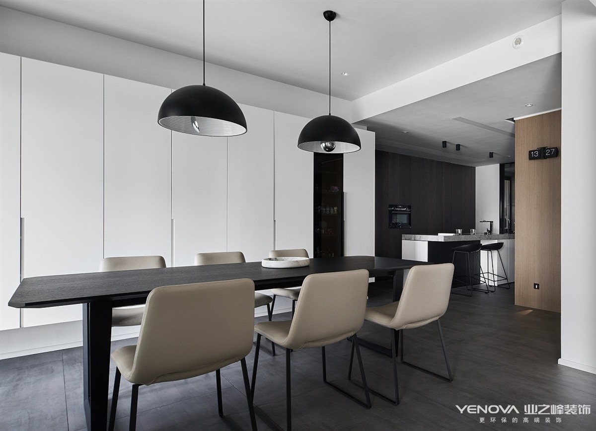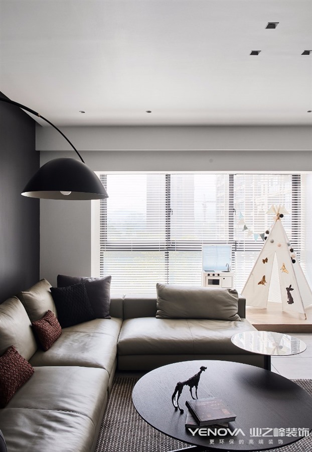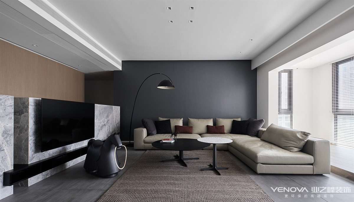 留白的切割效果视觉上拉伸了背景 同时延伸了整体室内横向空间