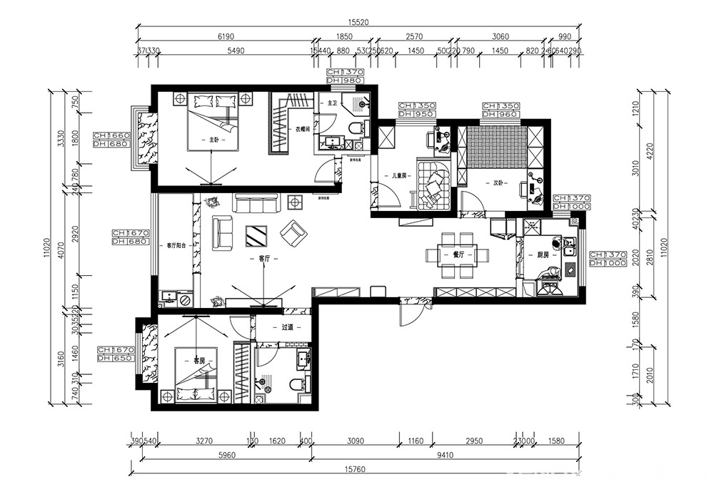 本案装修案例为四室两厅一厨两卫卫,男女主人为都市工薪夫妻,对生活品质有一定需求。设计师在了解了业主需求后,对整个户型进行了非常详细的调研和规划,从美观和功能性上进行了设计。