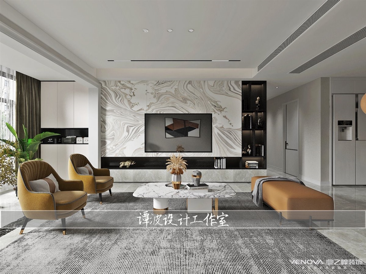 小区:新城和昌·湖畔樾山 面积:160㎡ 户型:三居 风格:现代简约风格