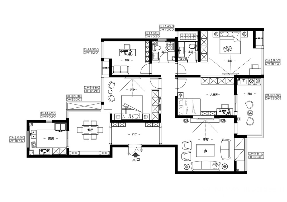 本案装修案例为四室三厅一厨两卫,业主是一对年轻夫妻,追求时尚,想要在加入现代元素时还需沉稳,对孩子房间的规划尤为看重,以及进门端景墙的处理。