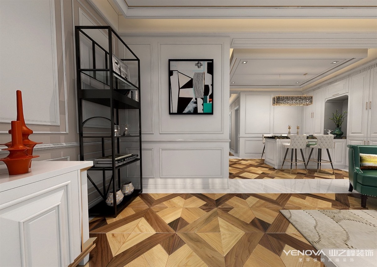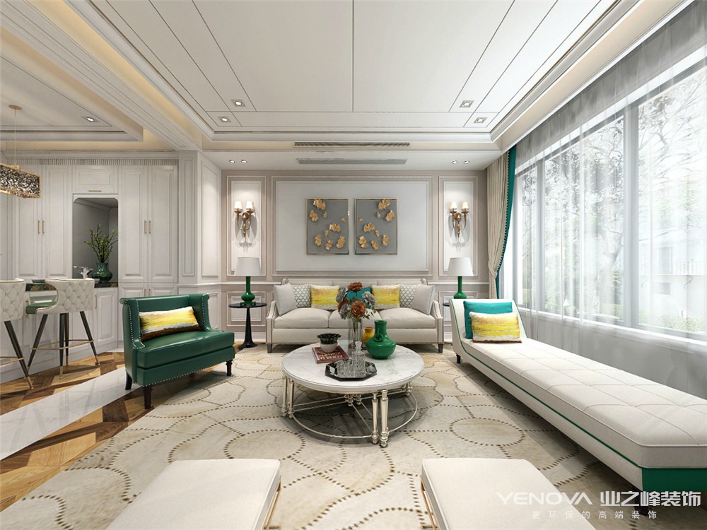 现代美式风格是时代发展趋势的产物,指的是是色彩相对传统,美式更加丰富,更加年轻化,家具选择更有包容性。其追求华丽、高雅的古典风格,居室色彩主调为暖色。本案设计整体色彩柔和宁静,适当的跳色使整体空间活泼生动。顶面、地面上下呼应将各区域空间合理划分,整体和谐统一,彰显了现代美式的时尚性特征。