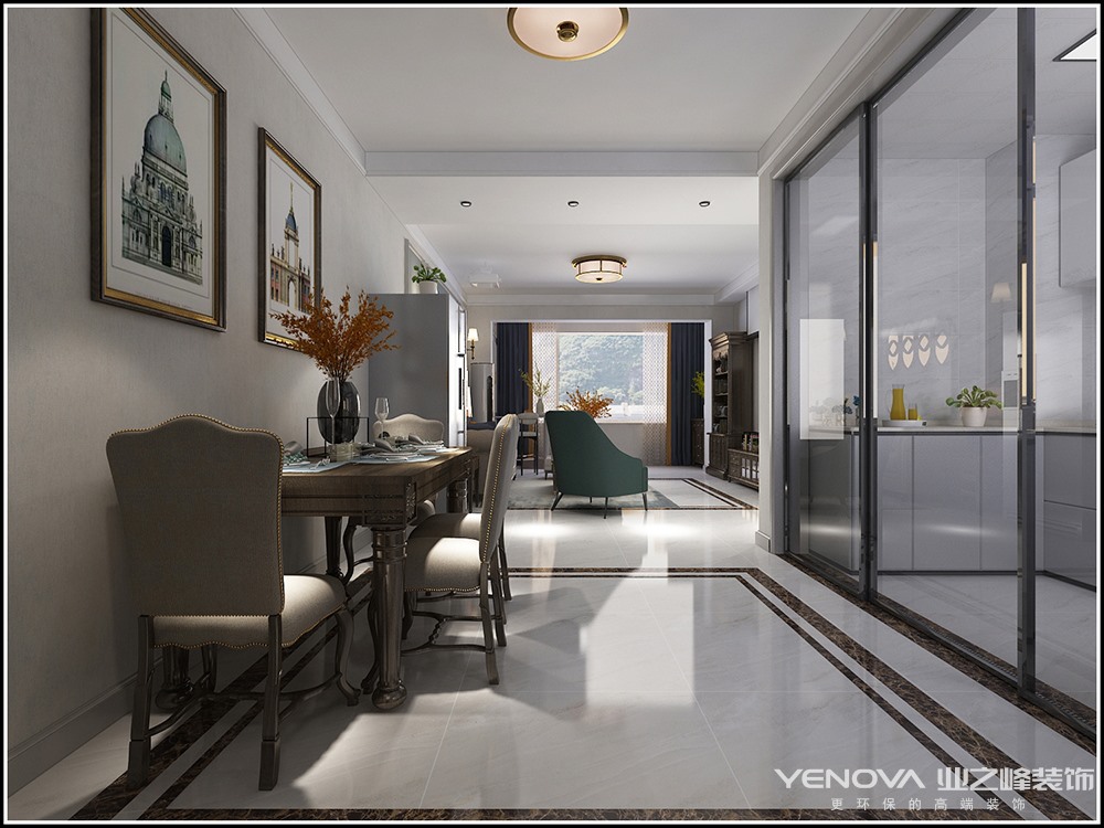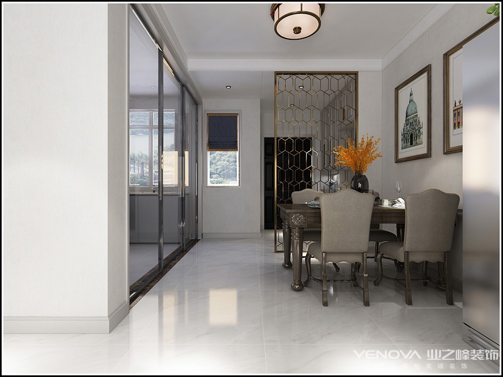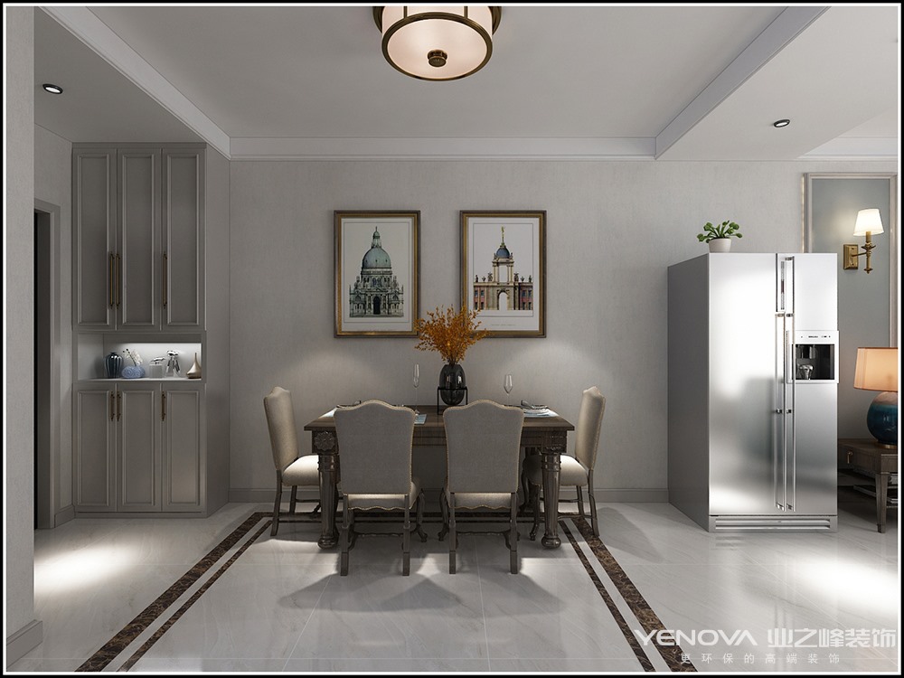 在家具选择上,风格要粗犷一些。不管用料还式表现上都选择了涂饰上简单的做旧处理,餐厅