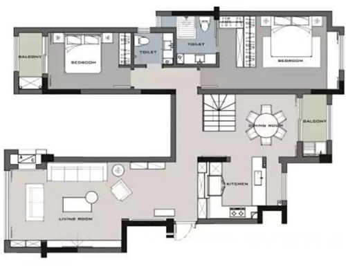 小区:世茂锦绣长江 面积:102㎡ 户型:二居 风格:现代简约风格