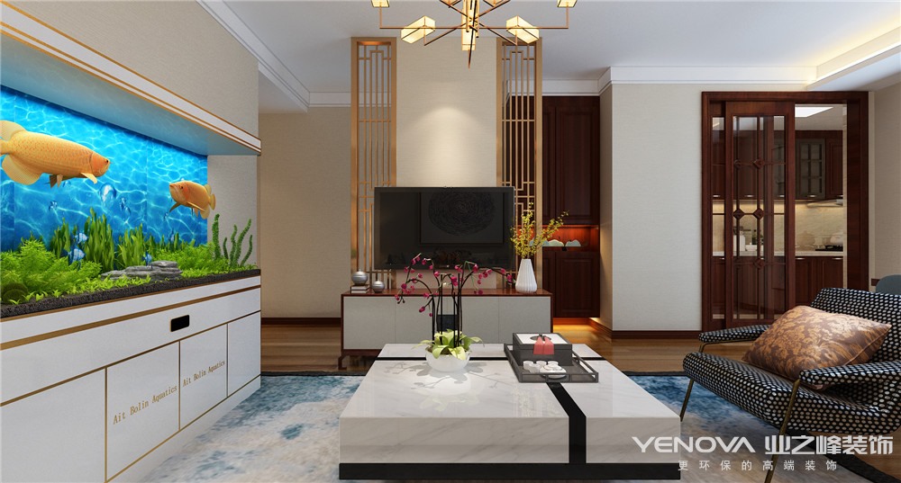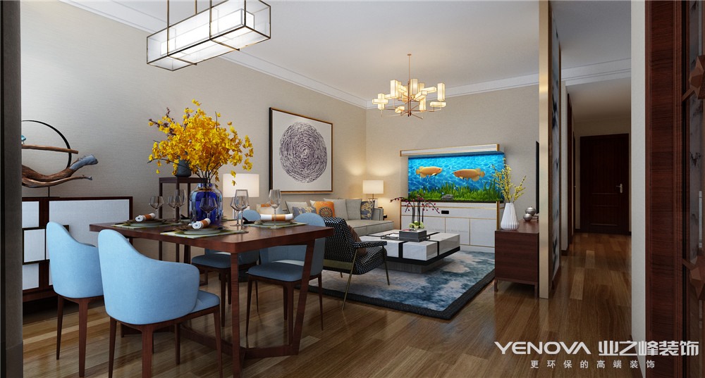 小区:云水世纪明珠 面积:130㎡ 户型:三居 风格:新中式风格