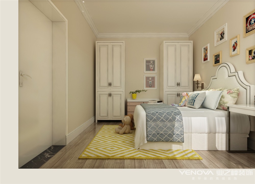 本案以纯净的白色为基础色,结合黄色与蓝灰色作为对比色的活泼设计,