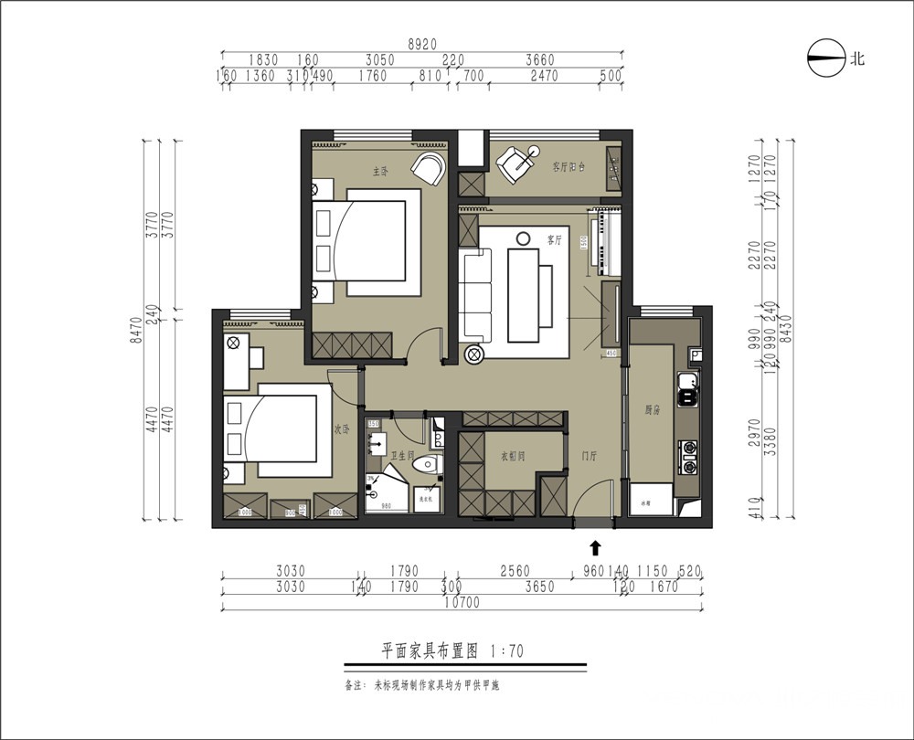 小区:常青藤 面积:77㎡ 户型:二居 风格:北欧风格