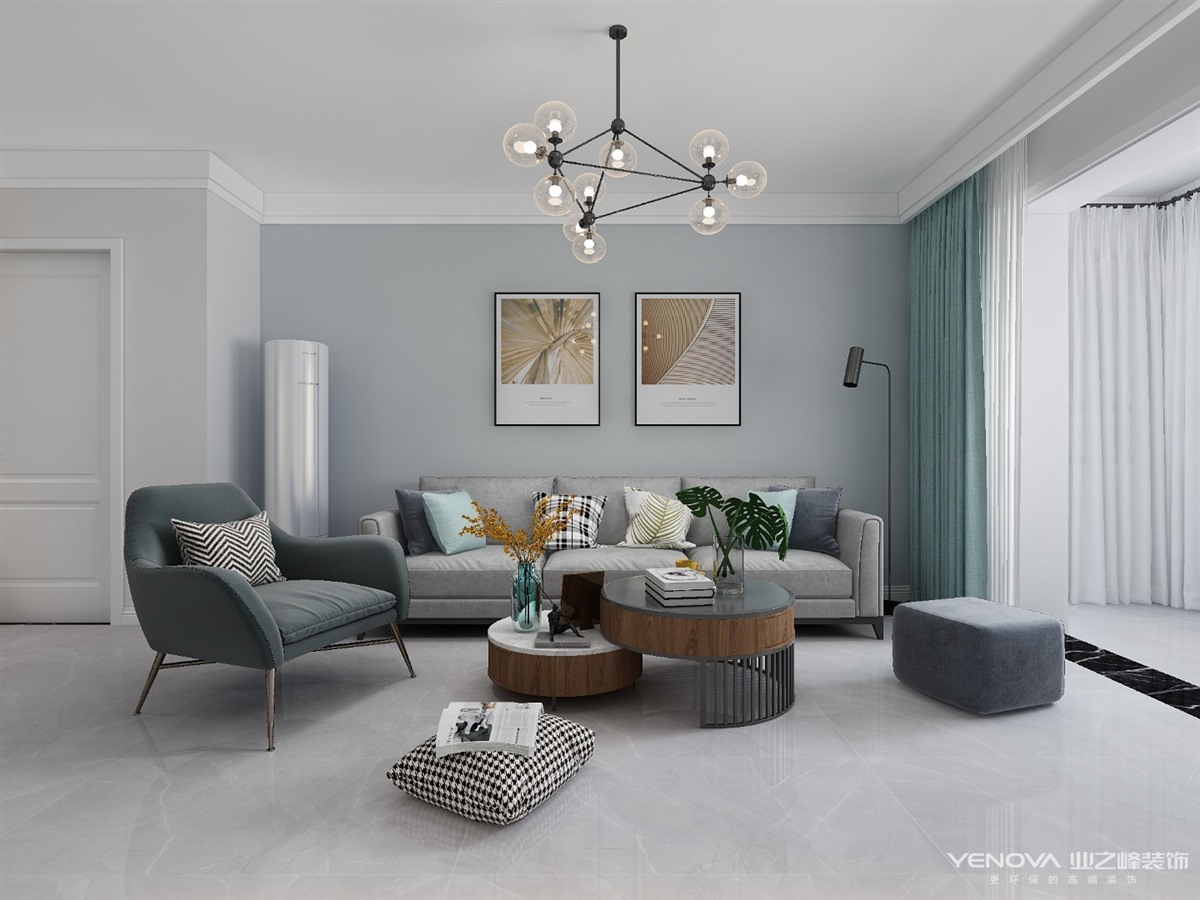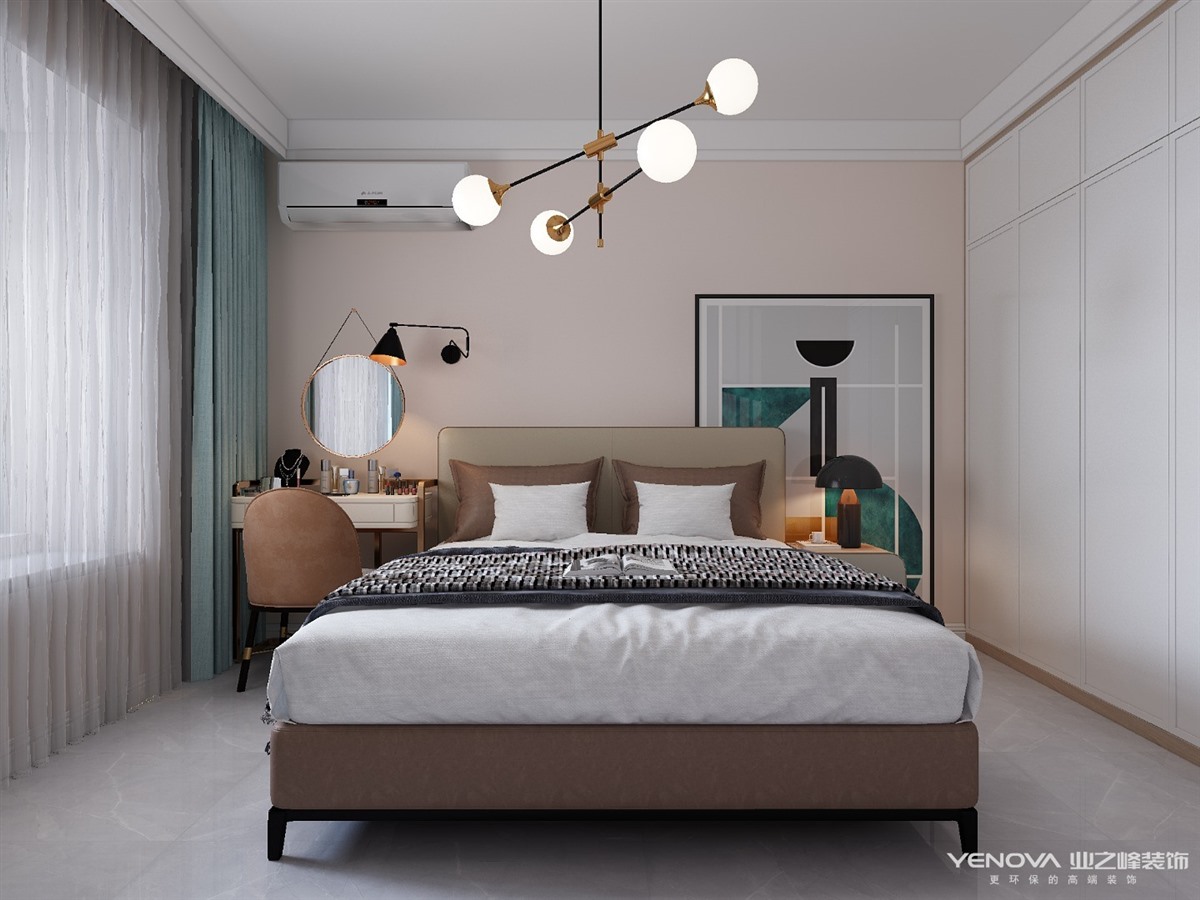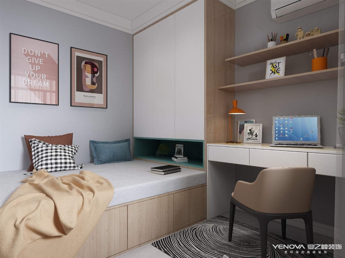 本案为三室两厅一厨房两位户型,风格为现代简约风。客厅一莫兰迪色系为主给人以温馨舒适的感觉。主卧室、次卧采用简洁的装饰风格充分体现现代简约设计风格的美感。。儿童房设计为榻榻米的形式,大大增加了储物空间,书桌和床一体设计充分利用有限的空间设计最舒适的居住体验。