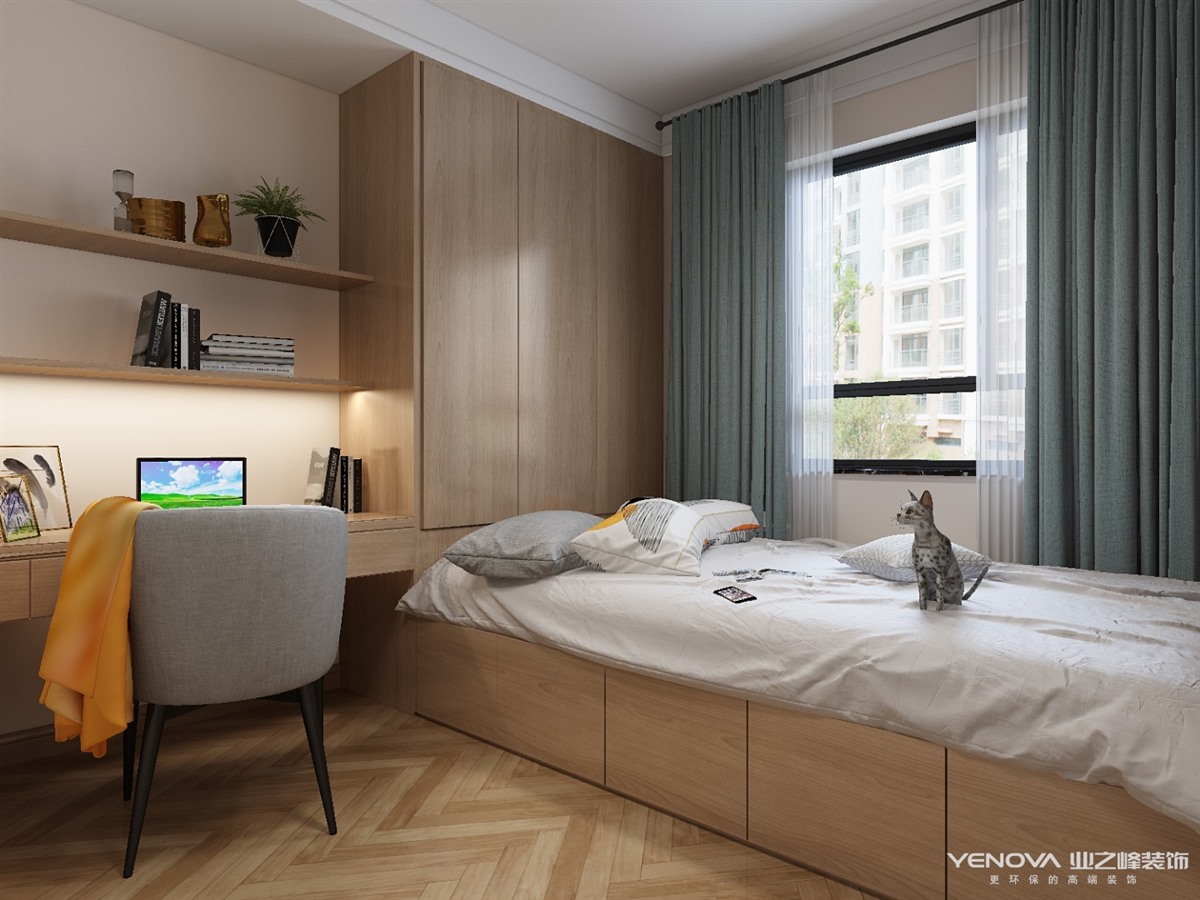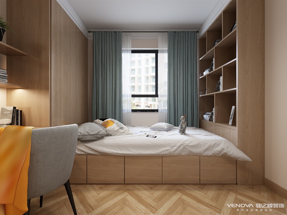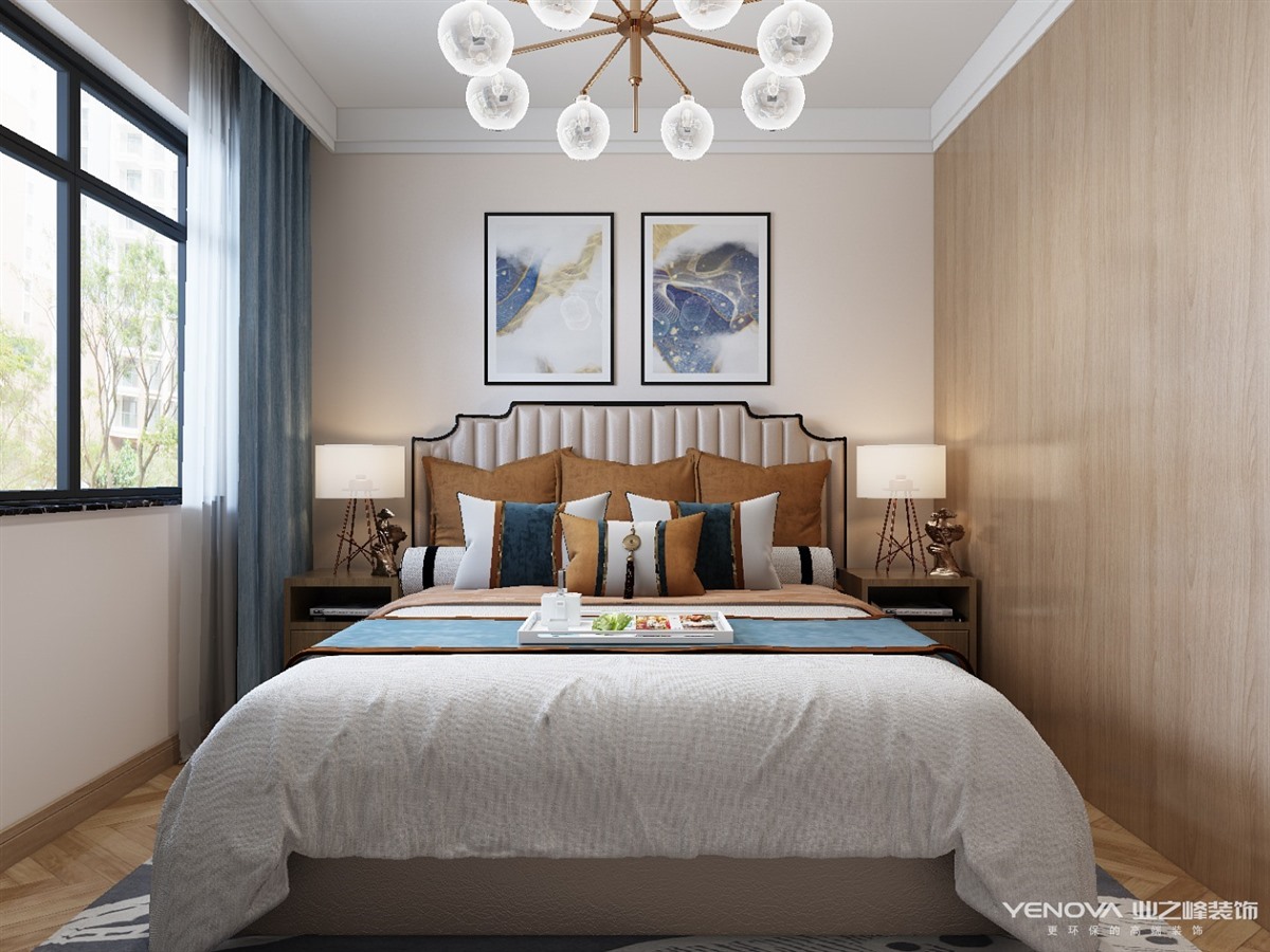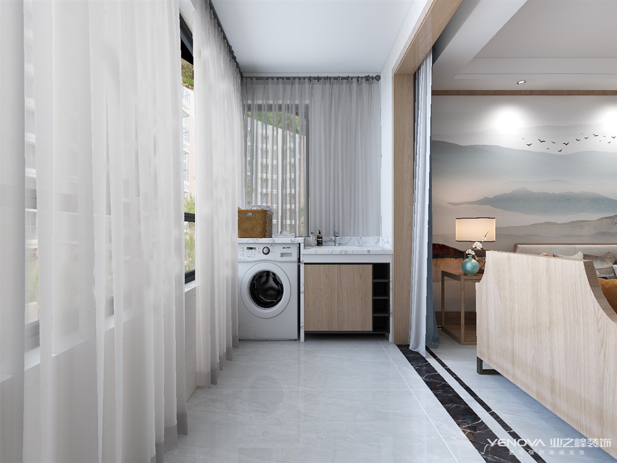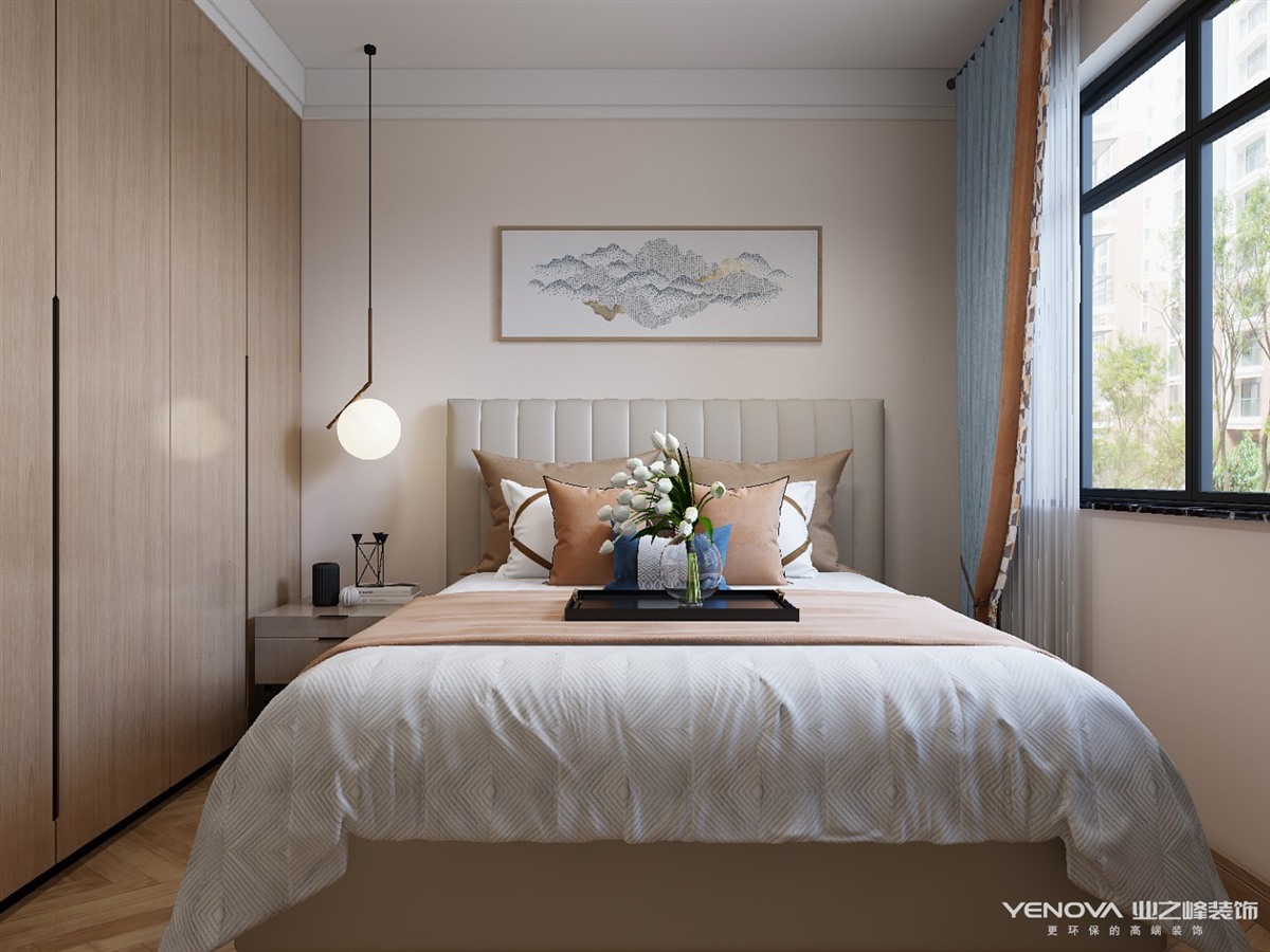 本案为一套三室两厅平层住宅,装修风格为新中式风格,客厅沙发后背景墙采用山水画装饰,充分体现其中式风格。吊顶为现代风格的直吊顶,搭配上简洁的石膏素线装饰整个顶面,整个空间以浅原木纹色为主,电视柜、茶几等家具都用了中式的原木色家具。使“”新中式“”更加实用,更富现代感。