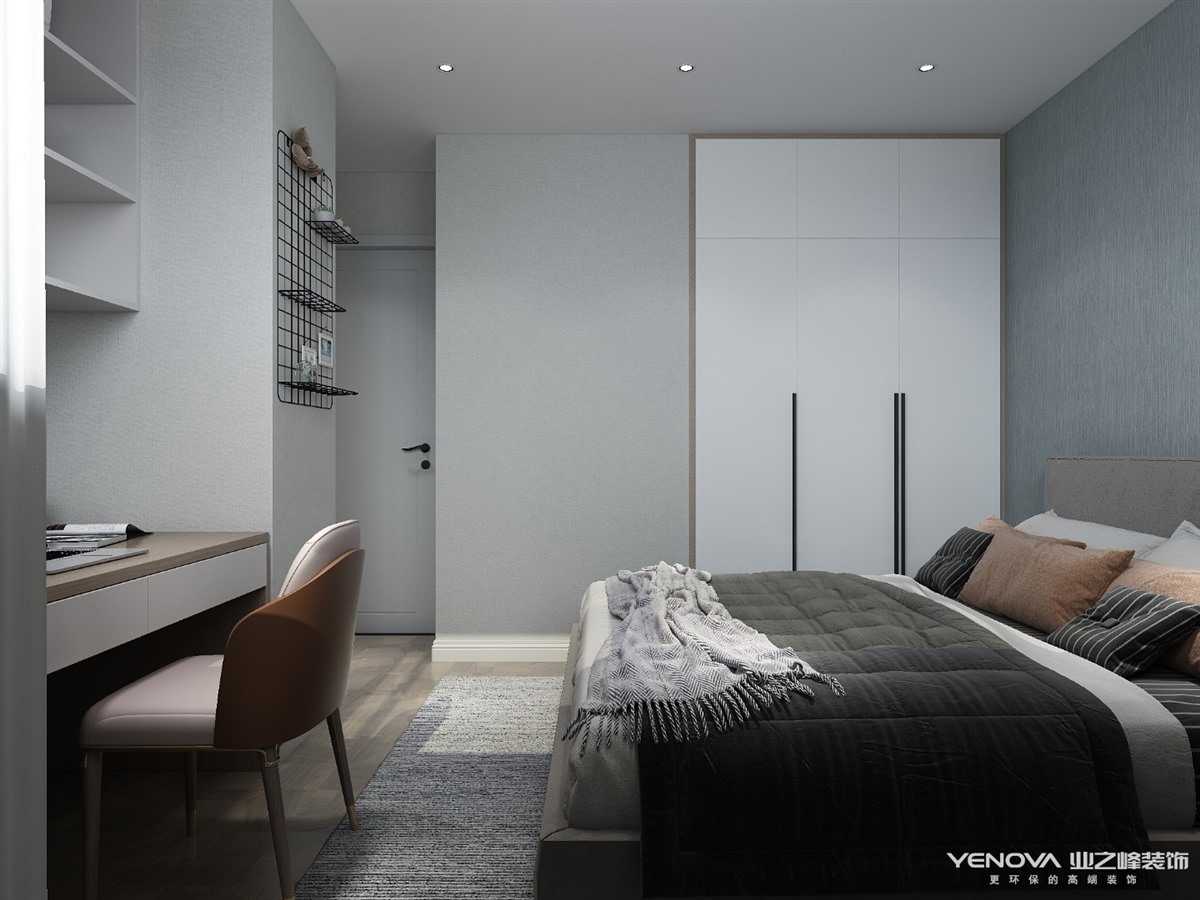 本案为现代简约风,现代简约风可以说是当下最火的风格之一,它的美是外在的简约大方,内是高质感。简约的配色给人清爽大气的感觉,墙面其中运用全屋壁布没有做复杂的装饰,干净利落。全屋采用无主灯设计让天花板显得更加干净和简洁。