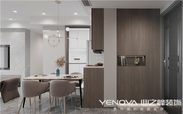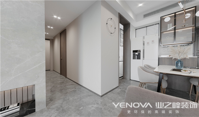 本案采用的是现代轻奢风格,在色彩上多选用高级灰和白色为主调,让整个空间的高级感凸显出来。在入门处设有入墙式鞋柜,在存放鞋子的同时也能起到美化空间的作用,玄关的设计能够吸引人的视线,给到室内私密性一定程度上的保护作用。半开放式厨房让小厨房有效解决了空间上的拥挤,让厨房空间能够得到合理利用。客厅用灰色大理石来作为电视背景墙,避免了繁杂的装饰品让空间有干净透亮的感觉。