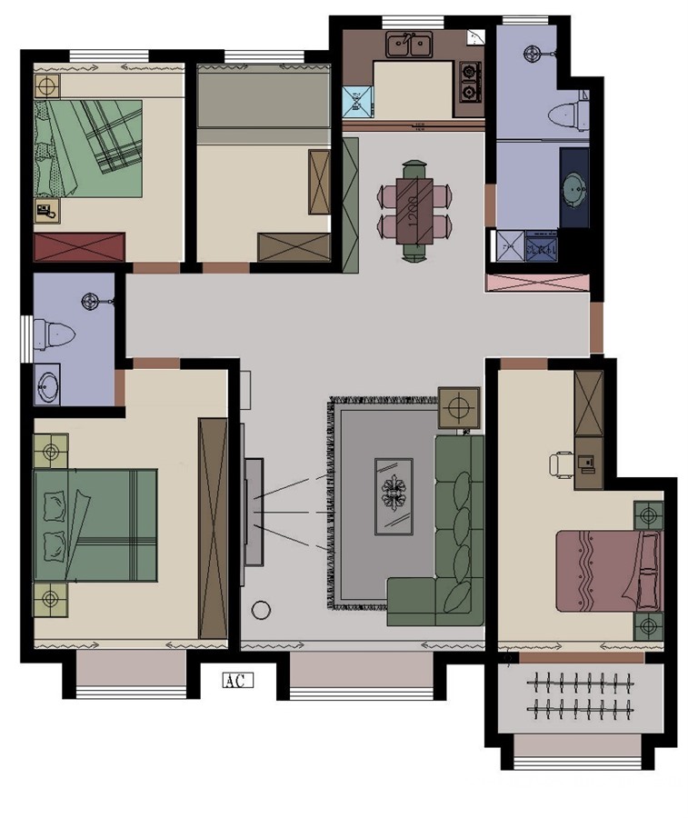 客户是个90后小姐姐,做事干脆利落,喜欢简洁的线条,对新鲜事物接受能力好,但仍然以实用为主。整体定位现代简约风格,利用瓷砖、金属、布艺、木饰面将设计描绘的生活美学徐徐展开.....推门而入不同灰调的深浅明暗,理性又自由的律动,通过秩序与想象的碰撞,打破过于严谨的拘束,产生放松愉悦的视觉享受。影视墙在材料上主要以半哑光木饰面+瓷砖作为主要材质,流线型的线条,纯粹的空间解构,精致的细节在简约的空间中运用不同材质演绎低调沉稳的另一类奢华。沙发墙用氛围灯造型做装饰并实现空间补光的作用,晚上一家人围坐一起的时候只需要打开这一个灯就可以满足采光需求。卧室户型图