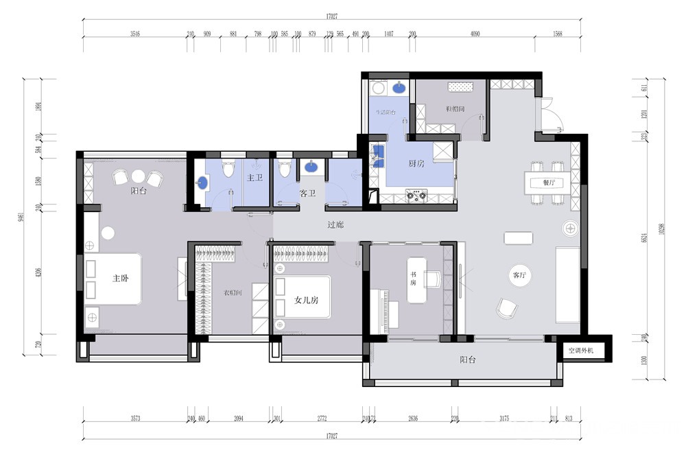 本次设计的户型是精装房局造,业主是一对40多岁的夫妇,有一个女儿,平时生活只有他们三人;业主在成飞集成科技股份有限公司上班,喜欢钻研,略懂设计,一家三口对现代轻奢风格情比较钟意,女儿审美感很好,在设计的过程中提出来了自己的很多想法,加入设计师的一些建议,最终完美落地,实现了一家三口的美梦。