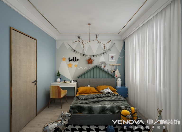 居室是一对夫妇偶尔带着老人居住,都比较喜欢现代简约的感觉,平时居住在市里上班,所以平时休息时,希望有个不一样的氛围环境,度假来使用。 ➹➹客厅 :客厅的空间彩光非常好,透过客厅外面能看到一层花园,视野很好,在设计上保留了客厅的宽敞空间,电视、沙发依墙而放,顶面没有考虑复杂的吊顶,采用宽度的石膏板线在顶面呼应墙面做出层次感,电视背景墙从材质跳跃,采用石材处理,更有大气之感。 ➹➹餐厅:餐厅空间格局重新划分,原空间细长,摆放后比例较差,所以吧台、餐桌两个区域划分,增加空间内容的丰富性。 ➹➹厨房:原有厨房细长,门口相对较小,将门口扩至1.7米双推拉门,从而厨房通透性较好,还增添了餐厅的彩光。 ➹➹主卧:原有顶面不规则,顶面用木屋斜顶结构造型,保留空间的房高高度,更加显温馨,床头采用软包,弥补实木家居的不柔和,增加舒适性。 ➹➹二层卧室:原有顶面保留斜面顶,凸显空间宽敞,由于是老人常住,所以不用过多复杂造型,从简约的壁纸与墙漆搭配空间,显温馨舒适的感觉。 ➹➹地下室:地下室的功能是朋友,家人平时的活动区域,呼应整体简约风格,顶面采用
