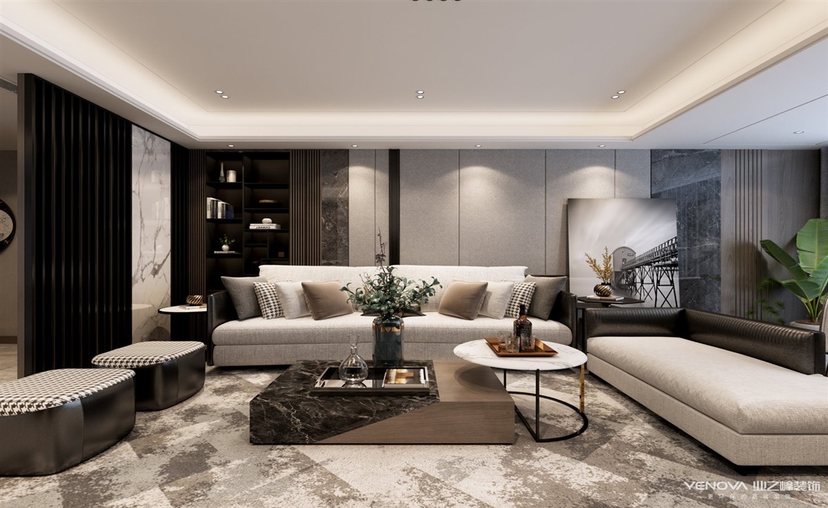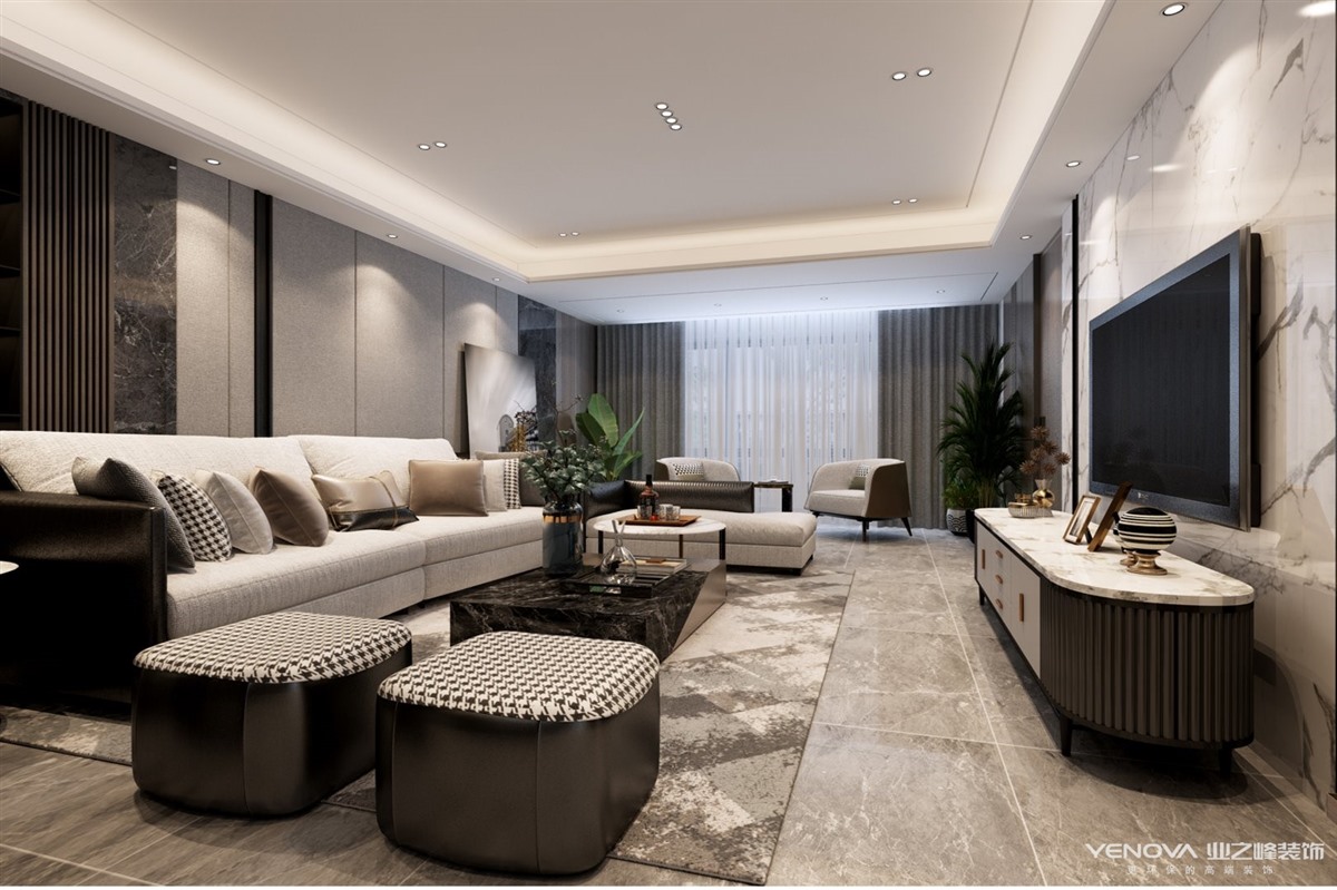 案例名称:轻奢与黑白灰的碰撞案例地址:东润泰和7号楼施工单位:郑州装饰公司业之峰装饰设计师:刘晓儒面积:170m²风格:现代简约轻奢户型结构:四室两厅三卫本案位于惠济区东润泰和小区4居室装修设计客户为三口之家居住,考虑到客厅空间采光以及空间利用问题,于是将客厅通往阳台的墙体拆除一部分,一方面在视觉效果上可以使空间看起来更大,采光也有所改善。