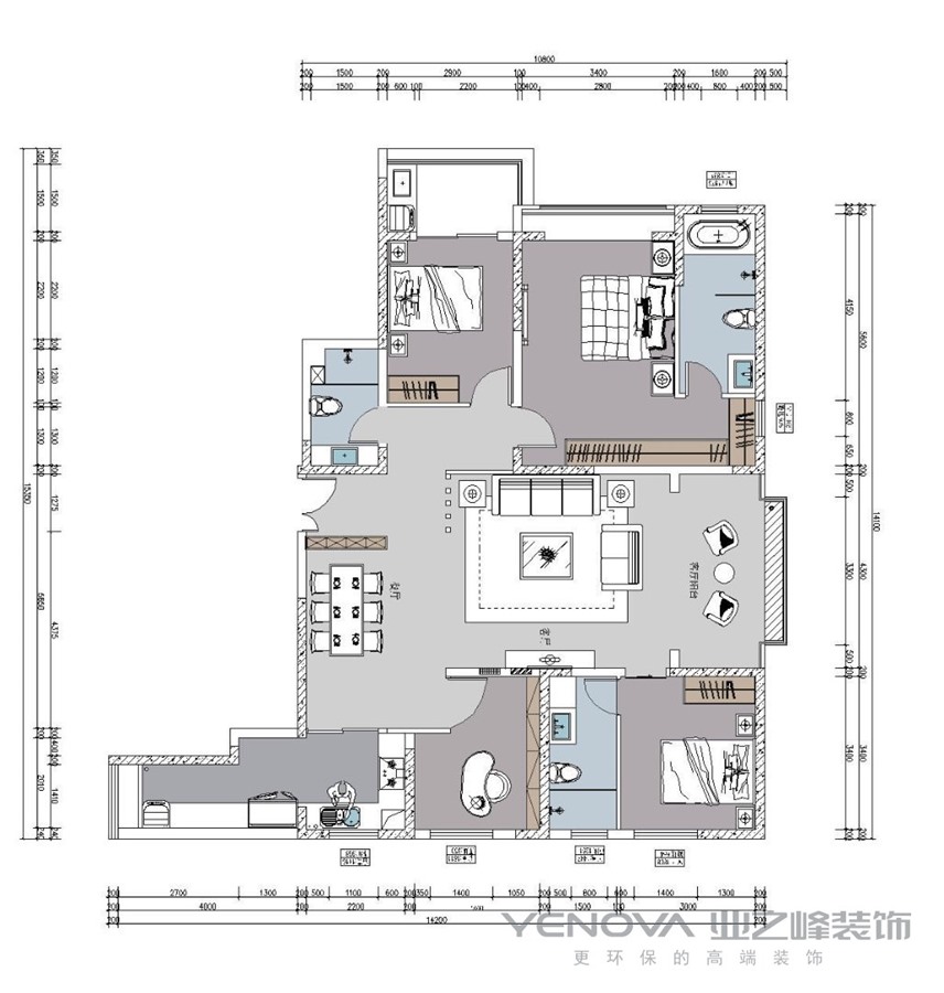 小区:东润泰和 面积:170㎡ 户型:四居 风格:现代简约风格