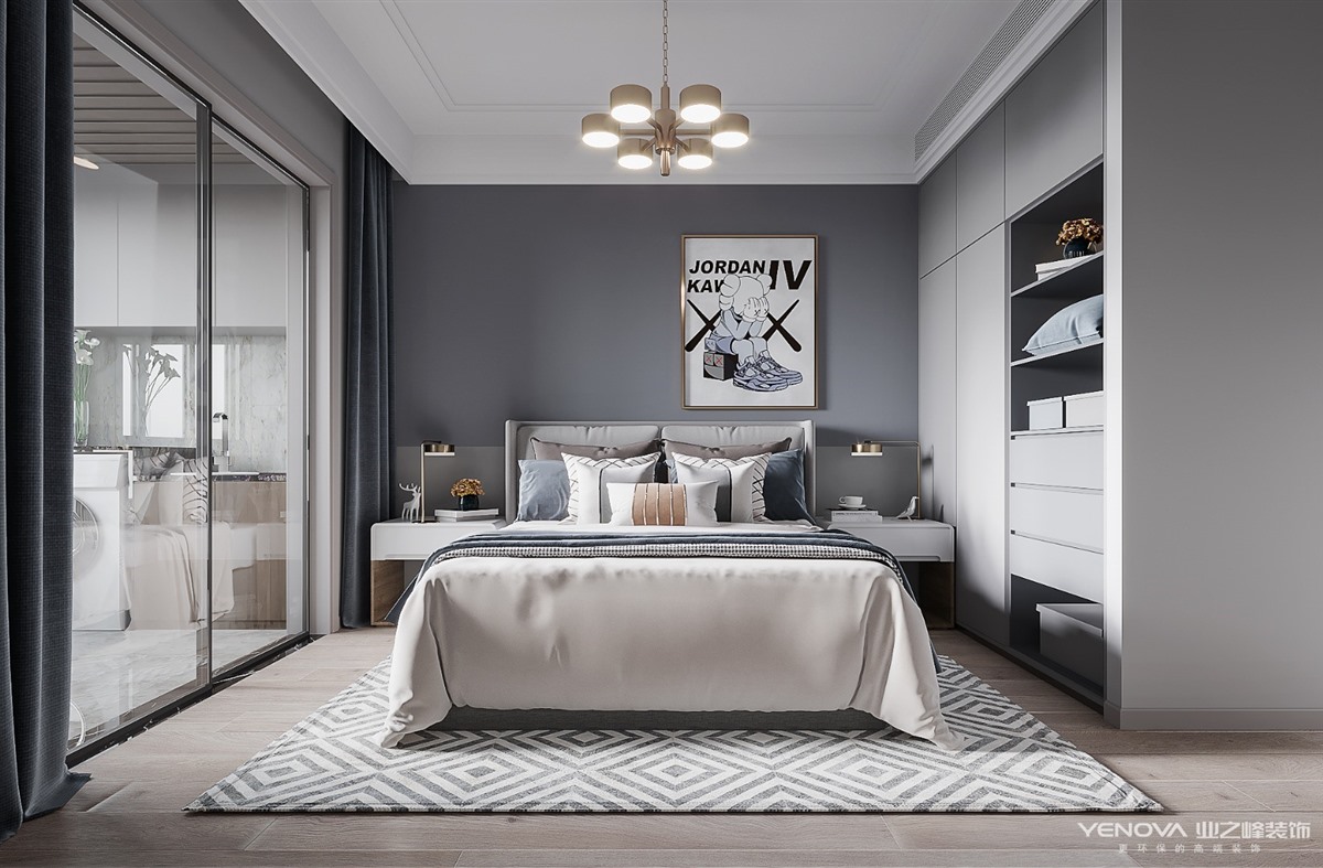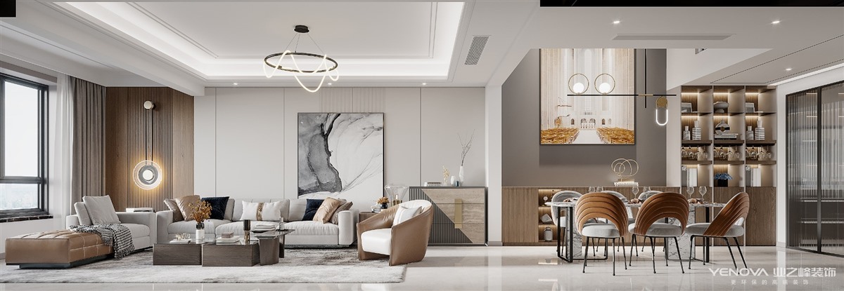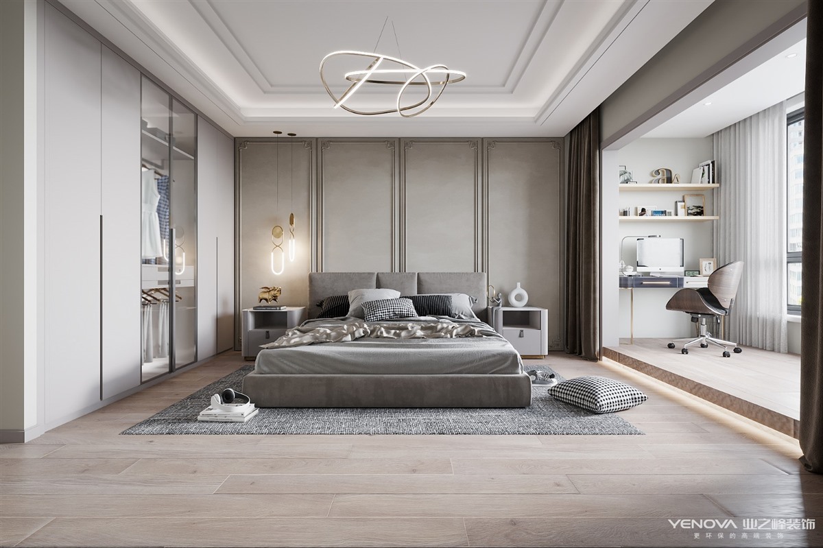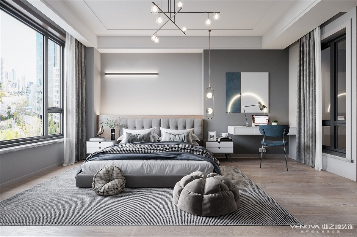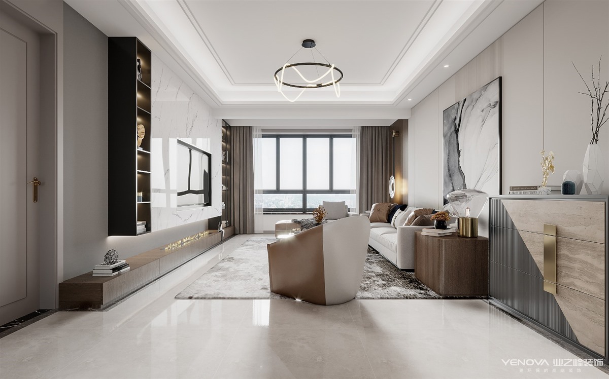 在现代轻奢风格中,色彩绝大多数都会选择黑色、灰色,高级黑、高级灰都是非常尊贵的颜色,在很多高端的场所,黑色、灰色往往都会作为主色调或者搭配色。在轻奢风格软装中,需要的是黑色和灰色的不起眼,但是又能亮眼,这些都是黑色、灰色能给的最好效果。舒适度是任何软装中都不能缺少的东西, 在现代轻奢风格软装中自然也不能例外,得益于家具材料的选择,都会把舒适度作为一个优先级的考虑,而且皮质的家具更能给人带来舒适的感觉。也正是轻奢风格的特点。 现代轻奢风格代表了一种精品的生活方式,为使用者寻求更大的价值体验。看似简洁朴素的外表之下却常常折射出一种隐藏的贵族气质,另一方面它还浓缩着意想不到的功能与科技元素。现代与古典的融合,强调简单中有奢华感受,现代与古典并重的设计原则。