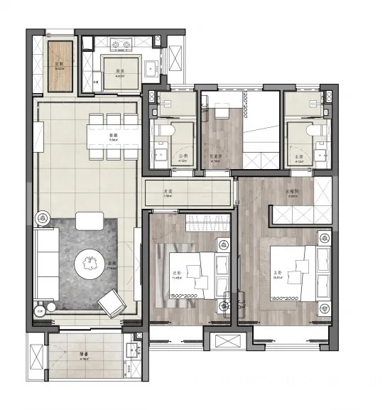 小区:西安中海·长安府 面积:115㎡ 户型:三居 风格:新中式风格