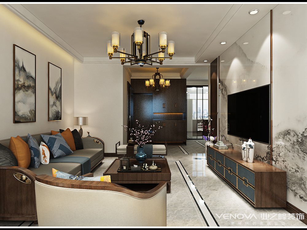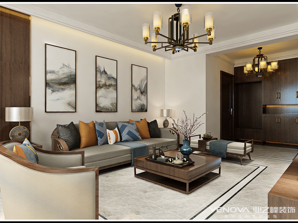 120㎡三居新中式风格店子新村