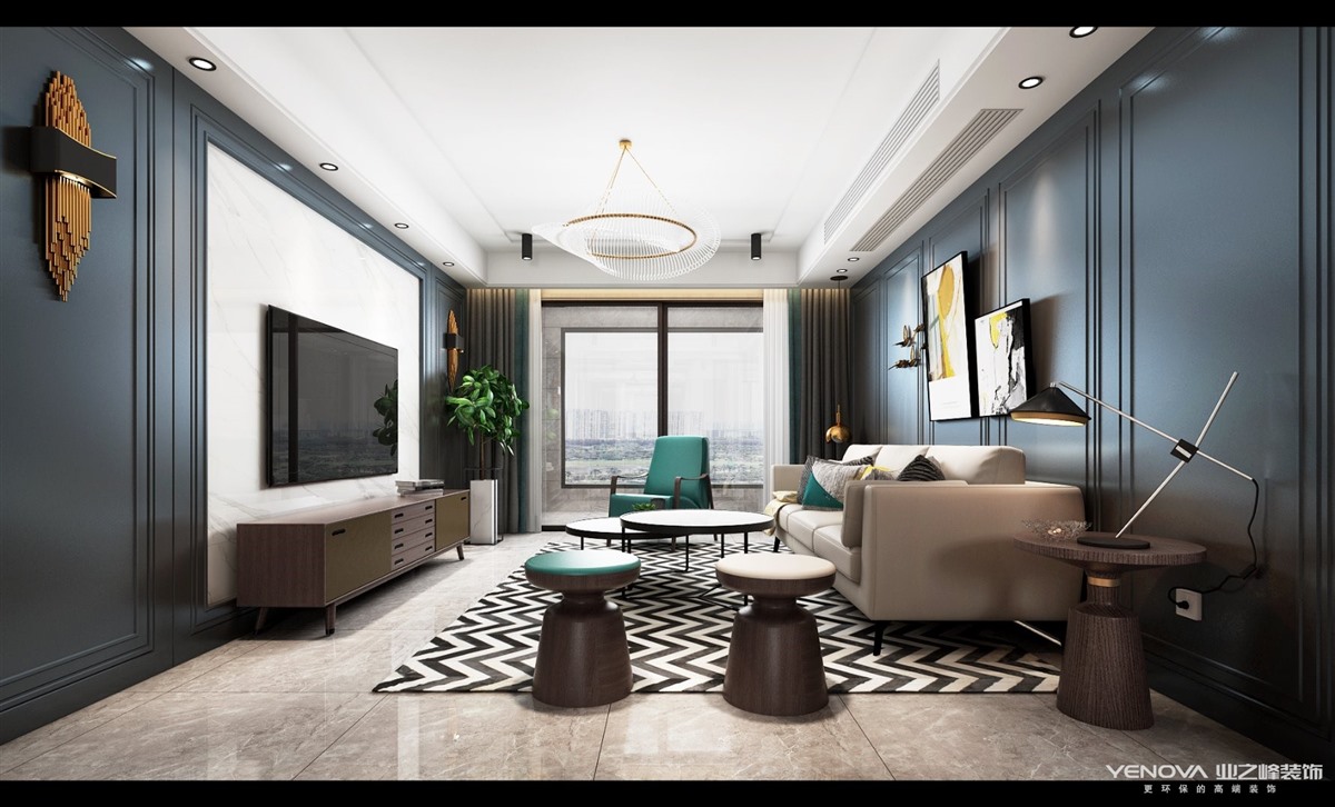 本案现代简约风格清新雅致,极简造型也让整体空间显得更大更通透。