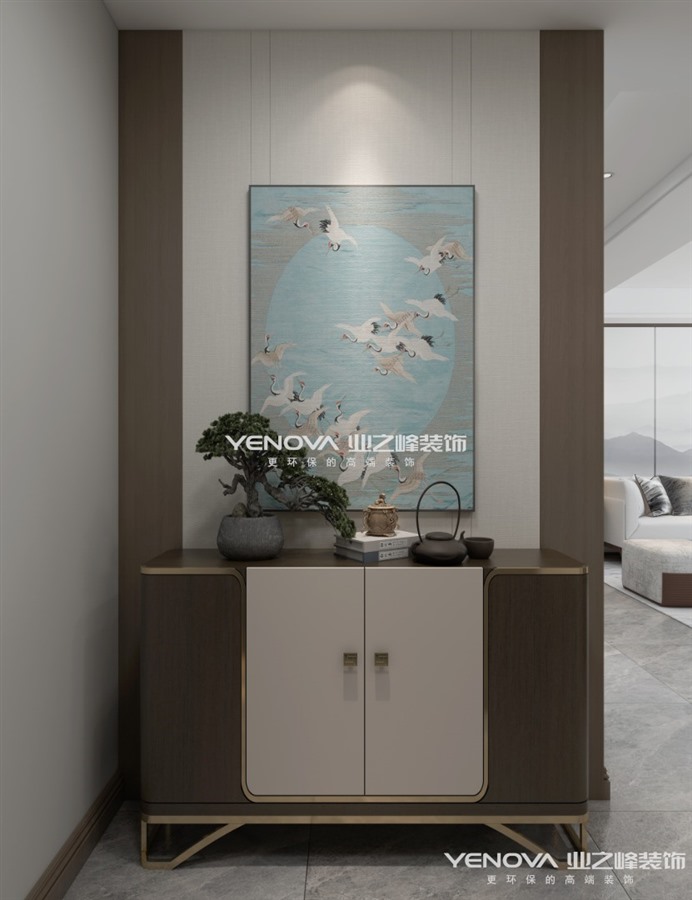 新中式风格是对传统中式风格的更新与传承,用现代的符号将中式的神韵体现出来。本案例设计以原木色为主,暖色调做主调,在家具配饰,装饰挂画上用少量冷色调和。灯具的选择以简洁的圆形为主,整体营造一个禅意新中式空间。