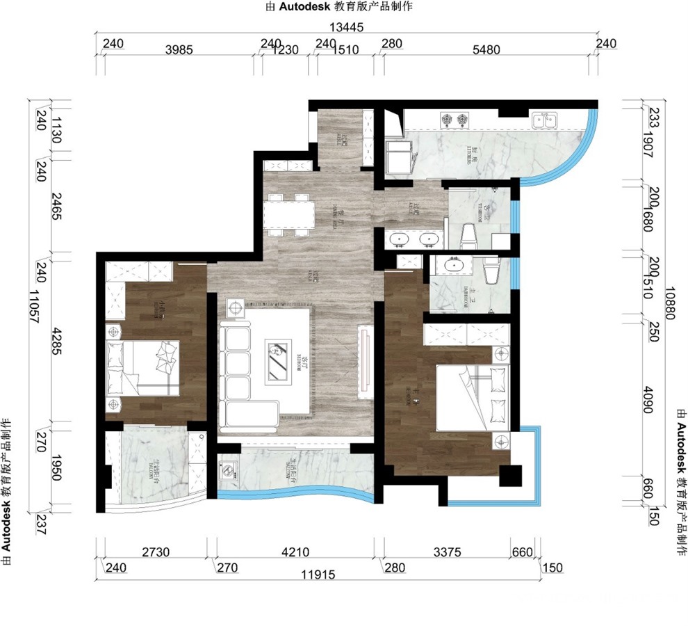 小区:金成世家 面积:107㎡ 户型:三居 风格:混搭风格