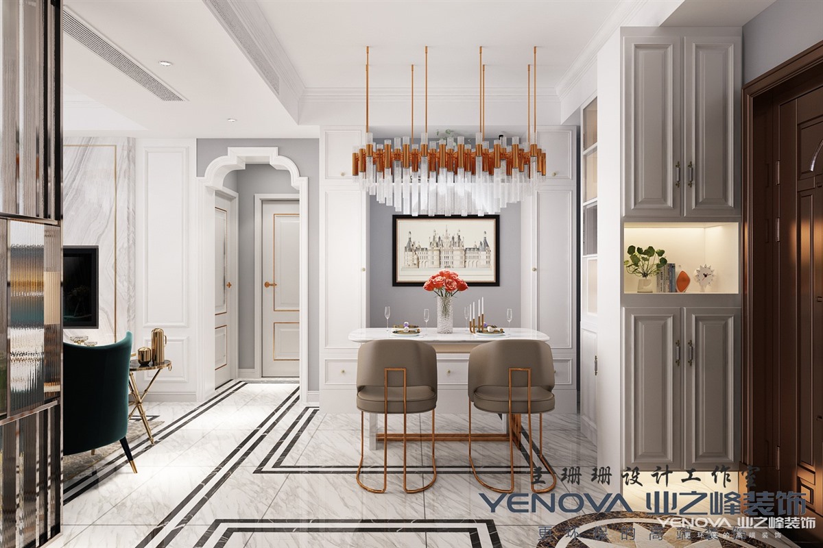 此次案例为美式轻奢风格,强烈的高贵感由然而发,高级灰与饱和度极高的色彩搭配,让人怦然心动。