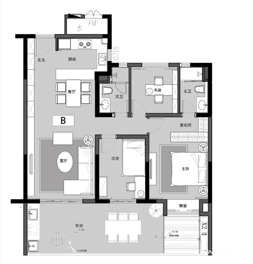 小区:香榭兰廷 面积:130㎡ 户型:三居 风格:现代简约风格