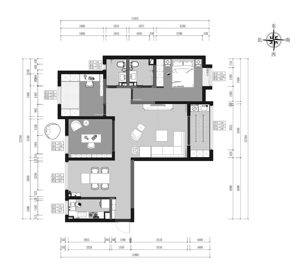 小区:中铁新城 面积:139㎡ 户型:三居 风格:现代简约风格